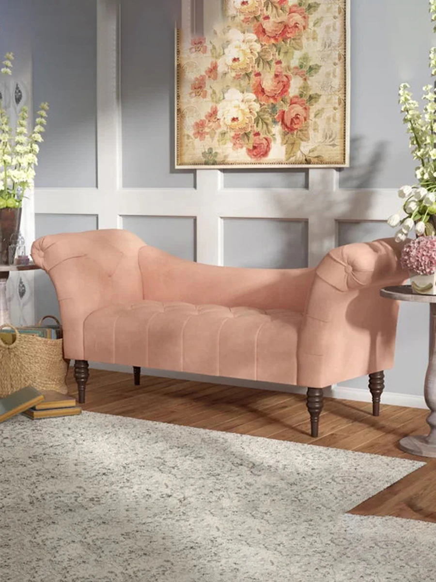 Chic American-Style Pink Fabric Chaise Lounge Sofa - Minimalist Single Bedside Chair for Your Bedroom, Perfect for Relaxation and Style!
