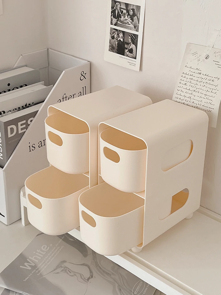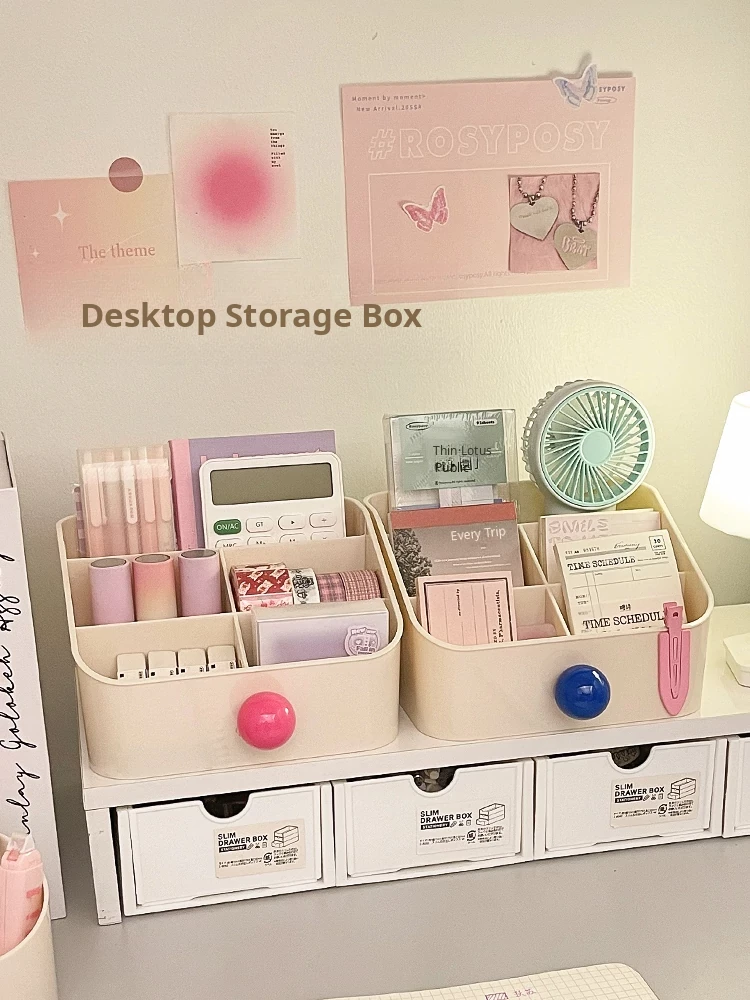 Creamy Desktop Storage Box - Large Capacity Drawer Organizer for Students' Dorms, Perfect for Stationery and Figurines, Multi-functional and Stylish Desk Organizer
