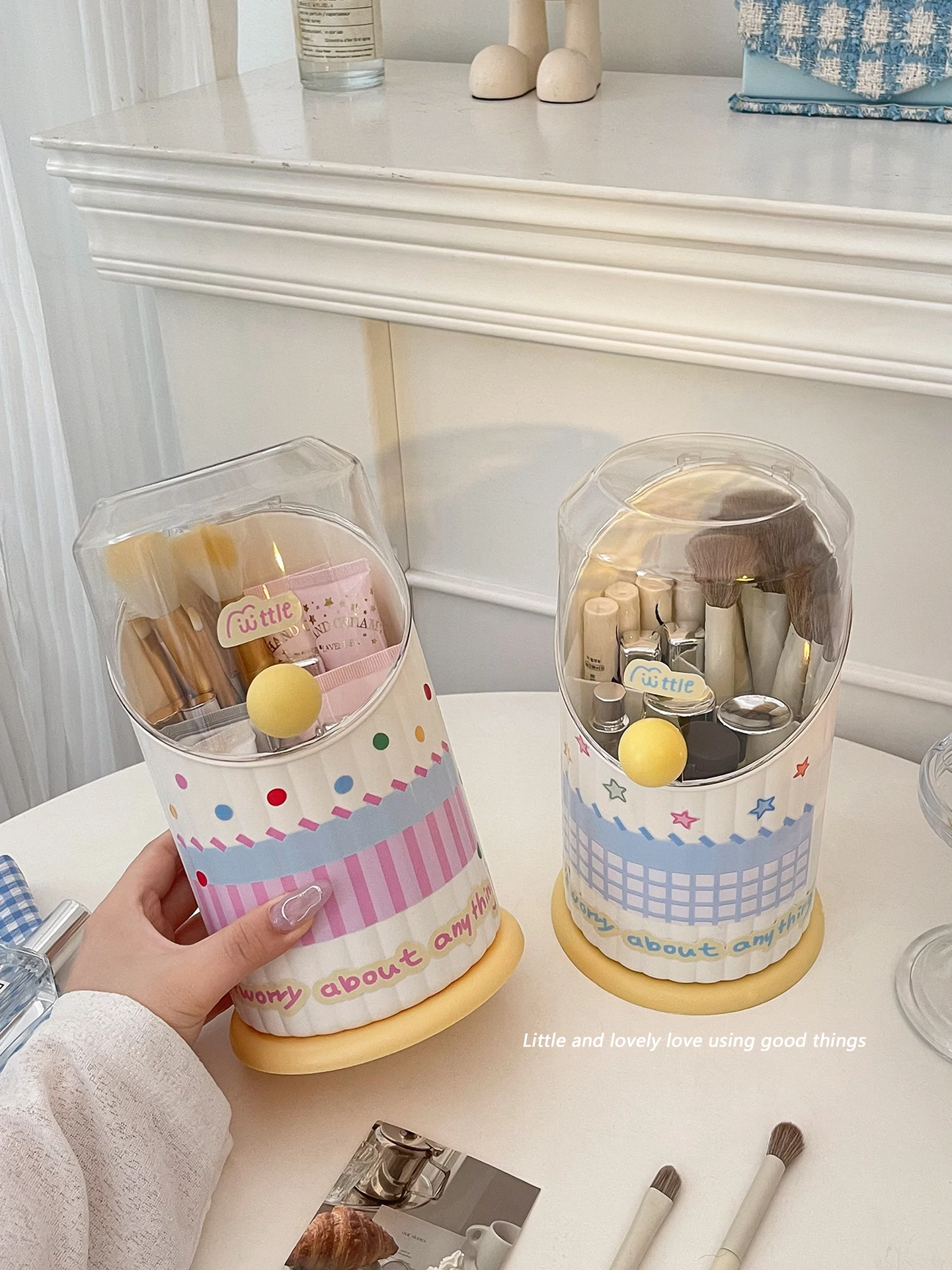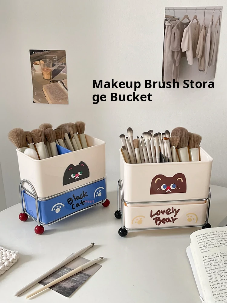 Cute Makeup Brush Organizer - Multi-functional Iron Storage Cylinder for Eyeshadow Brushes, Perfect for Home, Dorm, or Office Desktop Use as a Pen Holder