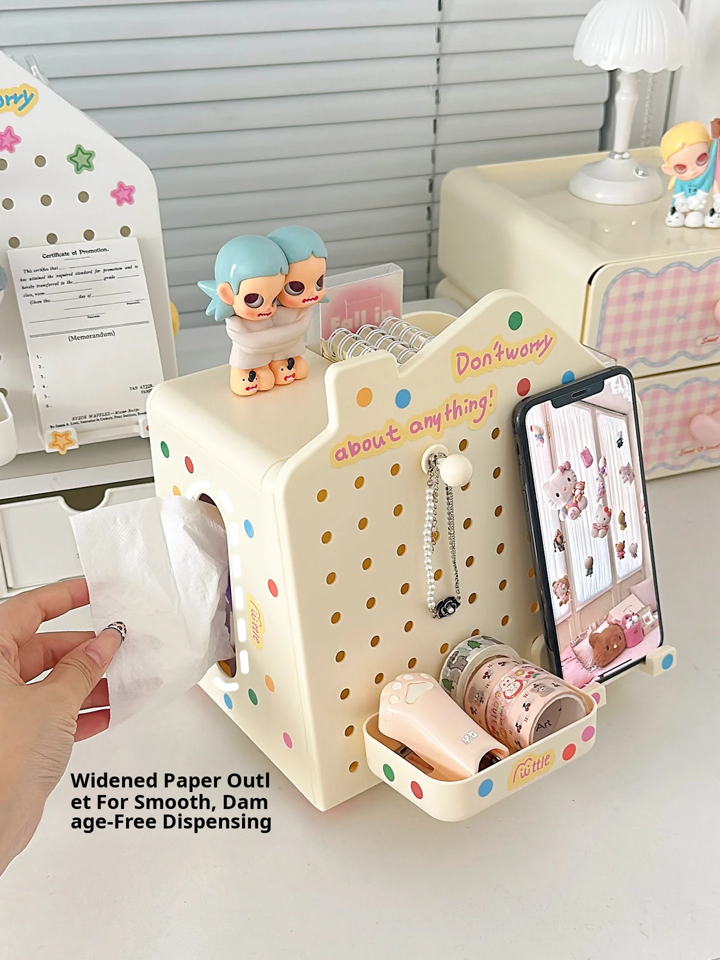 Multi-Functional Desktop Organizer - Cute House Tissue Box, Phone Stand, and Stationery Holder with Pegboard Design for Clutter-Free Workspaces
