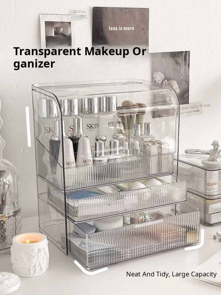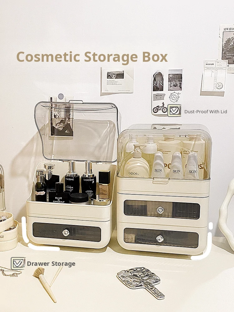 Stylish Drawer Makeup Organizer Box - Large Capacity Dustproof Skincare Storage for Your Desktop, Perfect for Influencers and Beauty Enthusiasts!