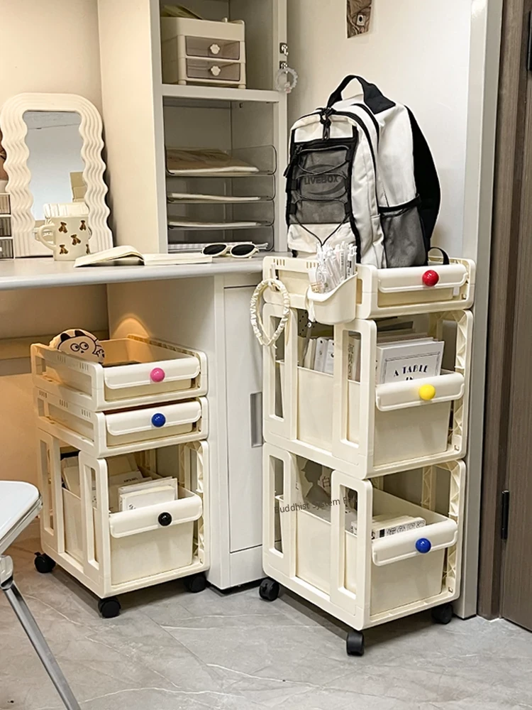 Stylish Dormitory Book Bag Storage Rack with Wheels - Mobile, High-Capacity Organizer for Books and Snacks, Perfect Under-Desk Trolley