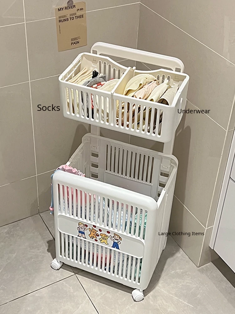 Double-Layer Laundry Hamper Cart - Mobile and Versatile Clothes Storage Bin for Dorms, Home, Bathrooms, and Laundry Rooms - Keep Your Space Organized and Tidy!