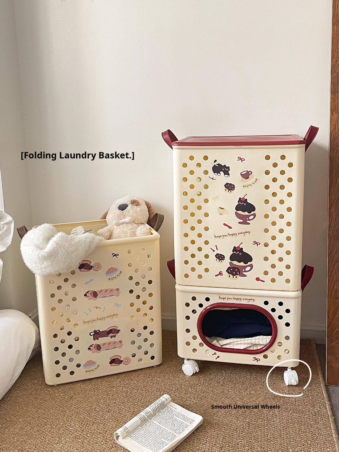 Cute Foldable Fabric Laundry Basket - Perfect for Home Use, Ideal for Dirty Clothes, Bathroom, Toy Storage, and Organizing - Stylish and Functional!