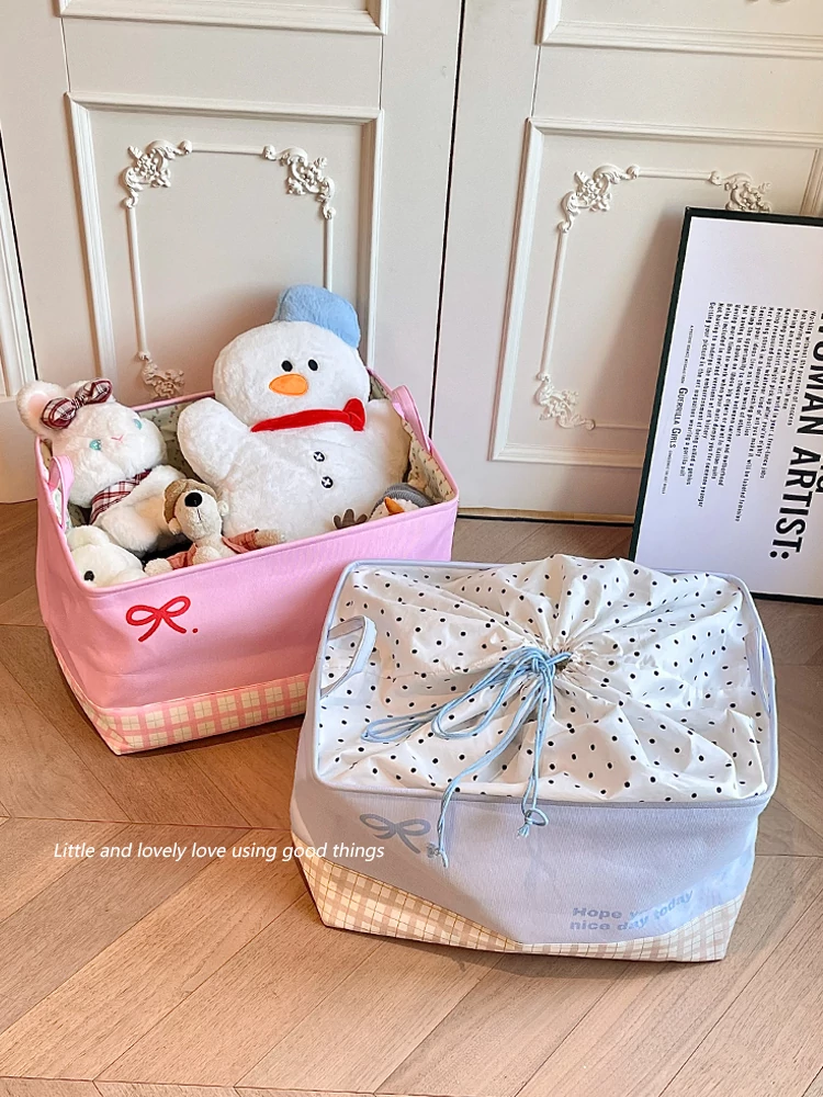 Ins Style Plush Toy Storage Basket - Foldable Handheld Laundry Hamper for Kids' Dolls and Stuffed Animals - Perfect for Home Organization and Fun Décor