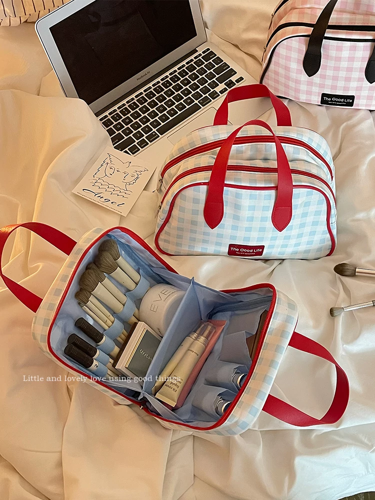 Large Capacity Makeup Bag for Women - Portable Travel Toiletry Organizer with Dual Layers and Multi-Functional Design, Ideal for On-the-Go Use in 2025