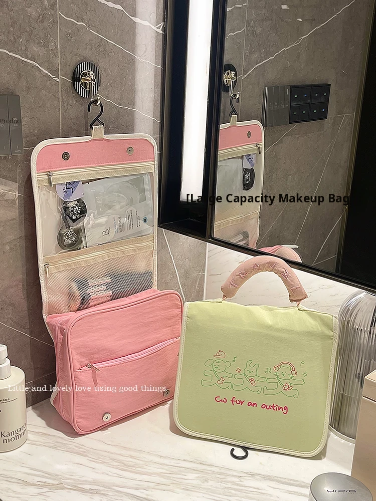 Stylish Waterproof Makeup Bag for Women - Portable Travel Toiletry Organizer with Hanging Feature, Spacious Compartments for Makeup Brushes and Accessories, Ideal for Hotels and On-the-Go Use
