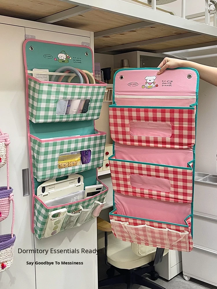 Plaid Storage Hanging Bag for Students – Over-the-Bed Organizer for Dorm Rooms, Perfect for Bunk Beds, Wall-Mounted Net Pocket for Easy Access to Essentials