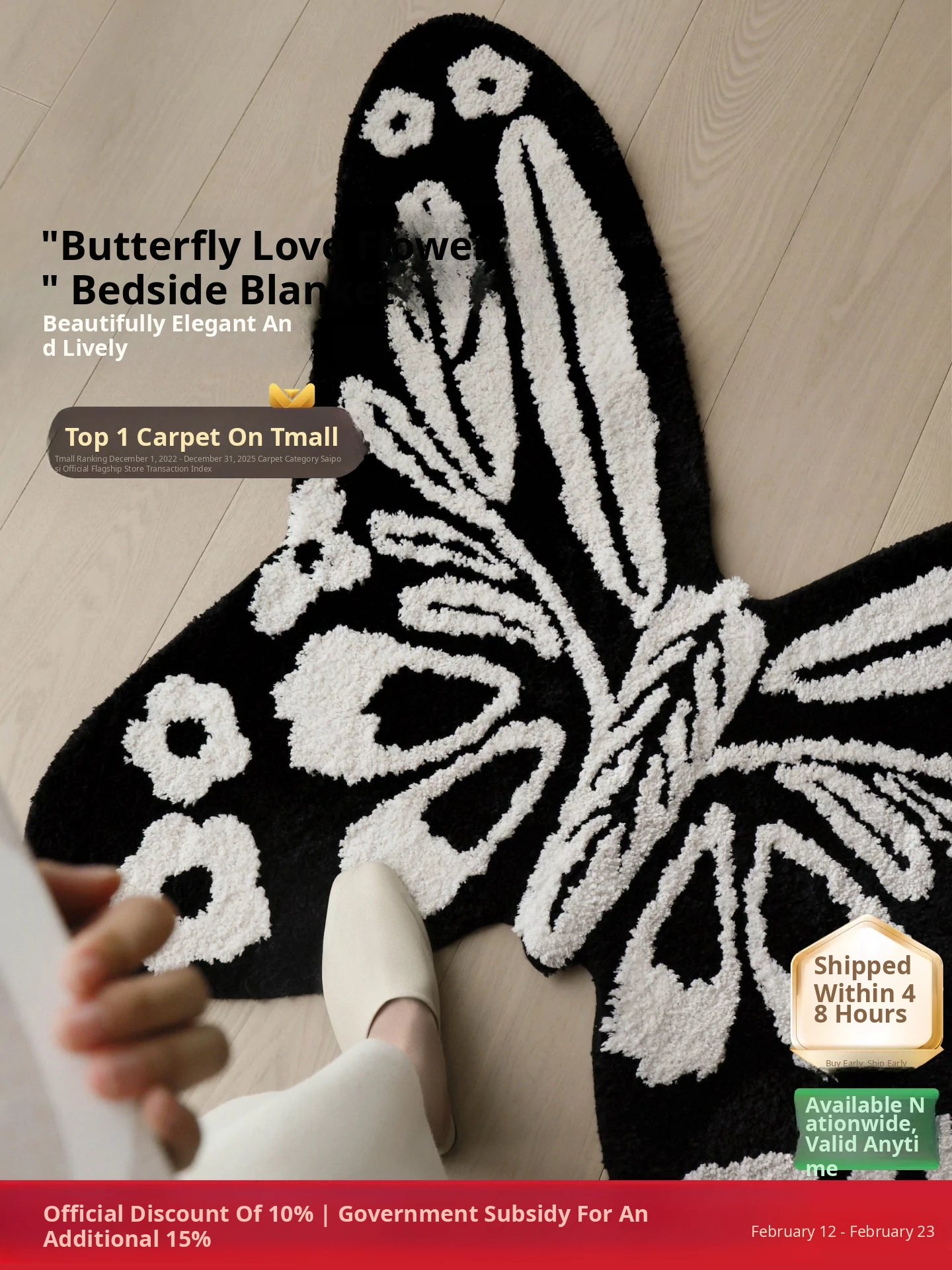 Seaboss Butterfly Love Flower Shaped Rug - Luxurious Machine Washable Carpet for Living Room, Bedroom, and Closet - Elevate Your Home Décor with Elegant Design