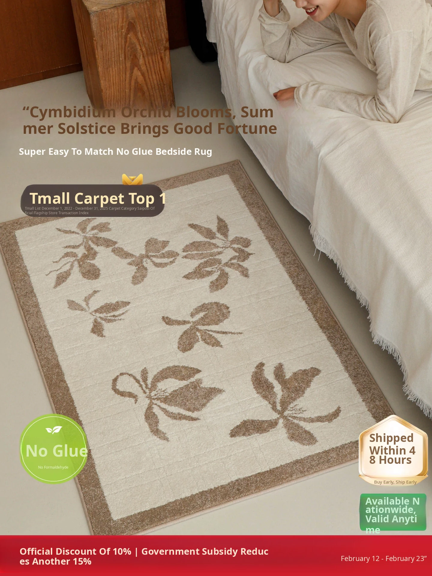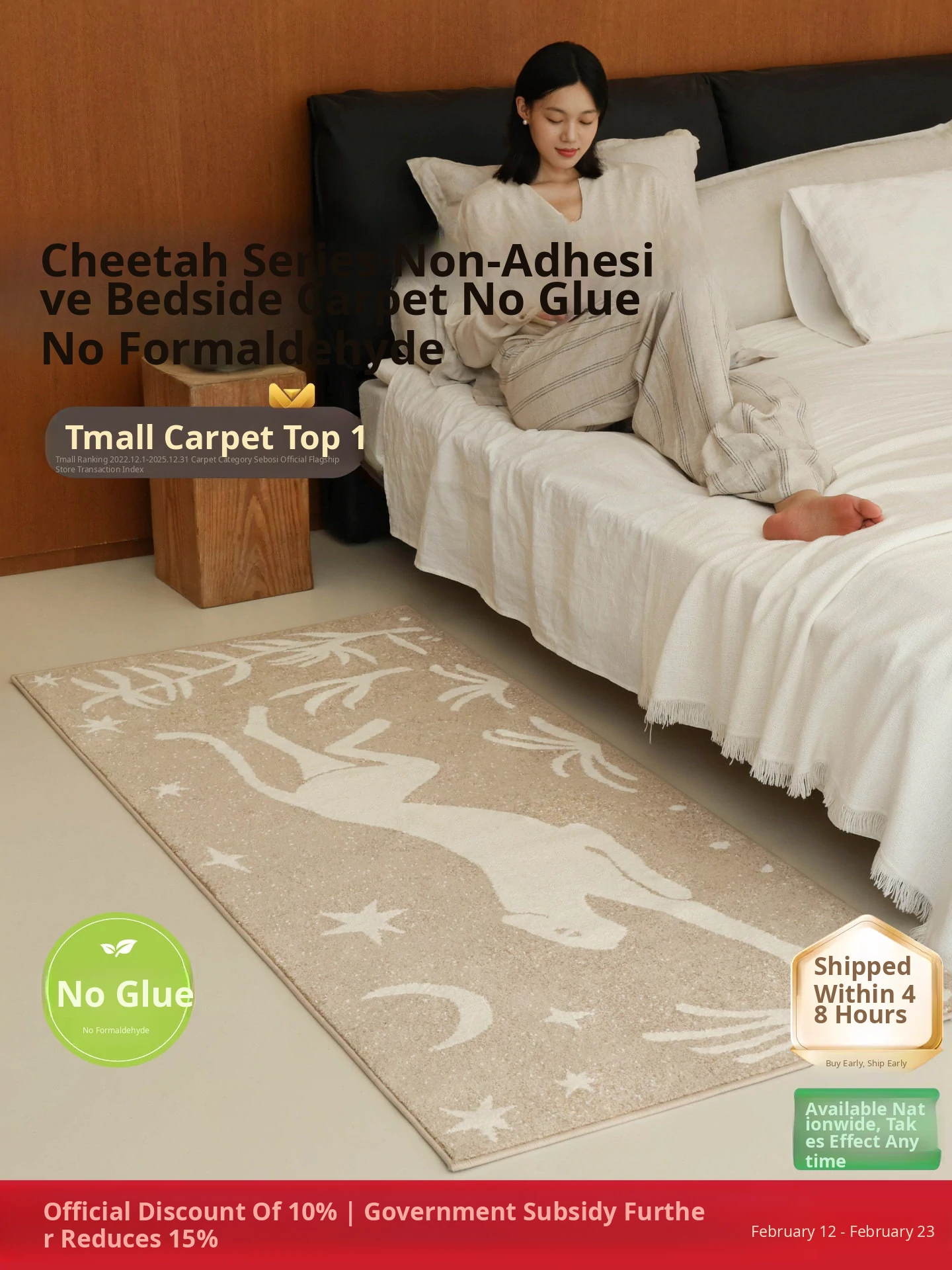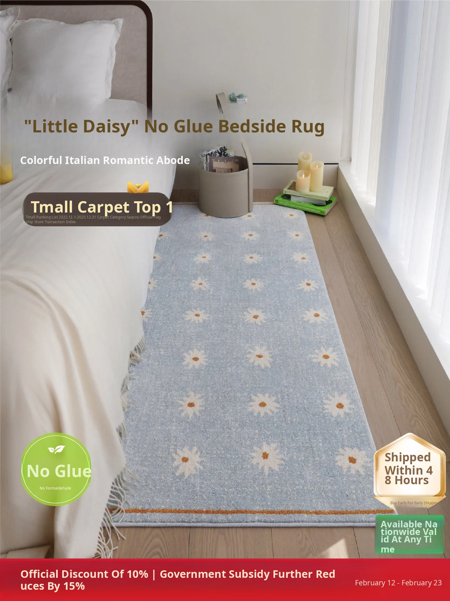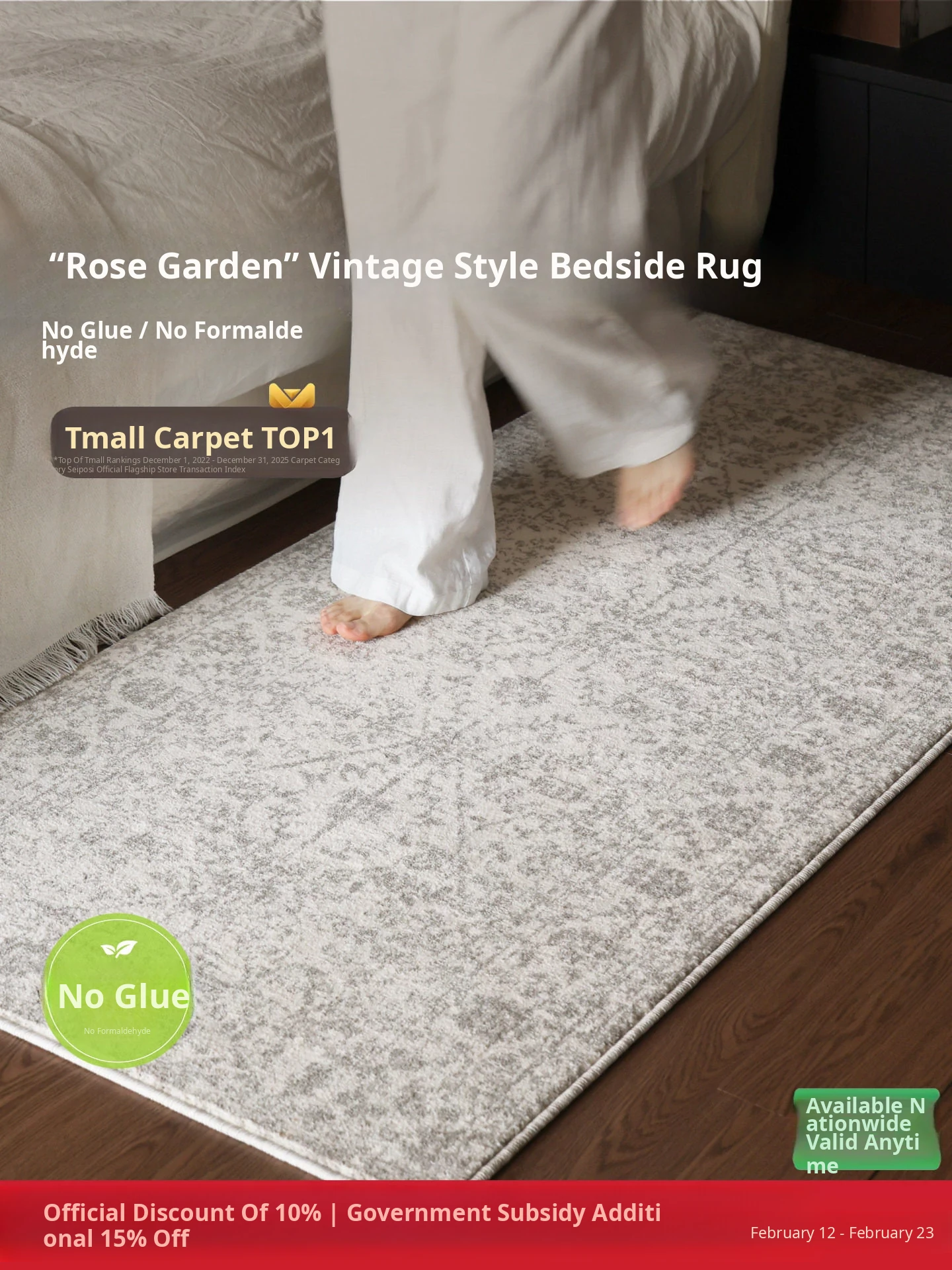 Seipos No Glue No Formaldehyde Bedside Rug - Luxurious Vintage Decor for Bedroom, Closet, or Bed End - Elevate Your Space with Eco-Friendly Style