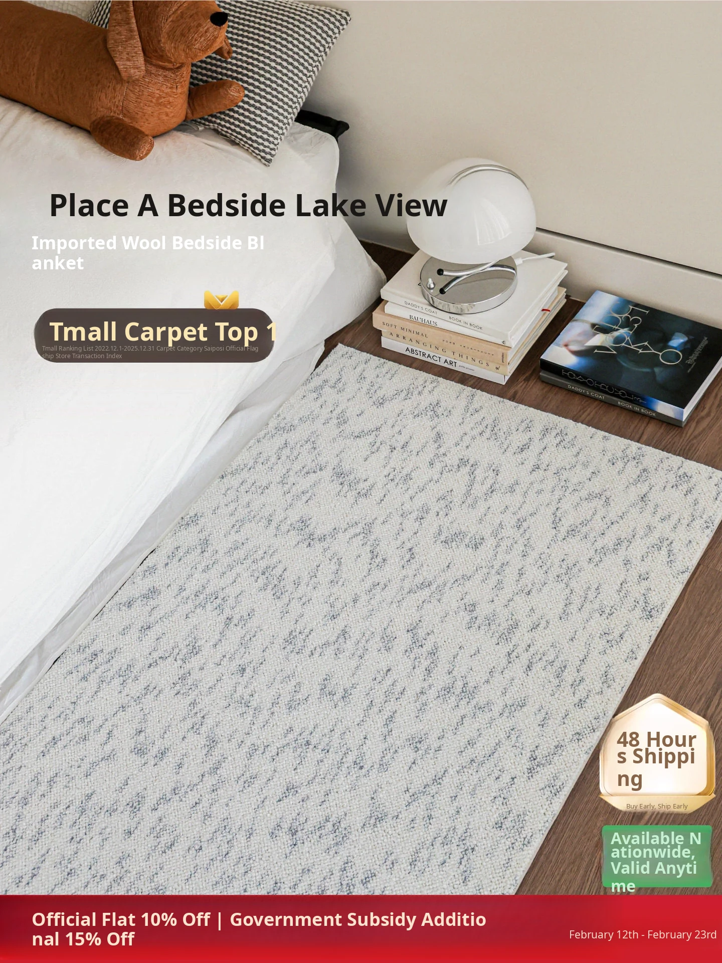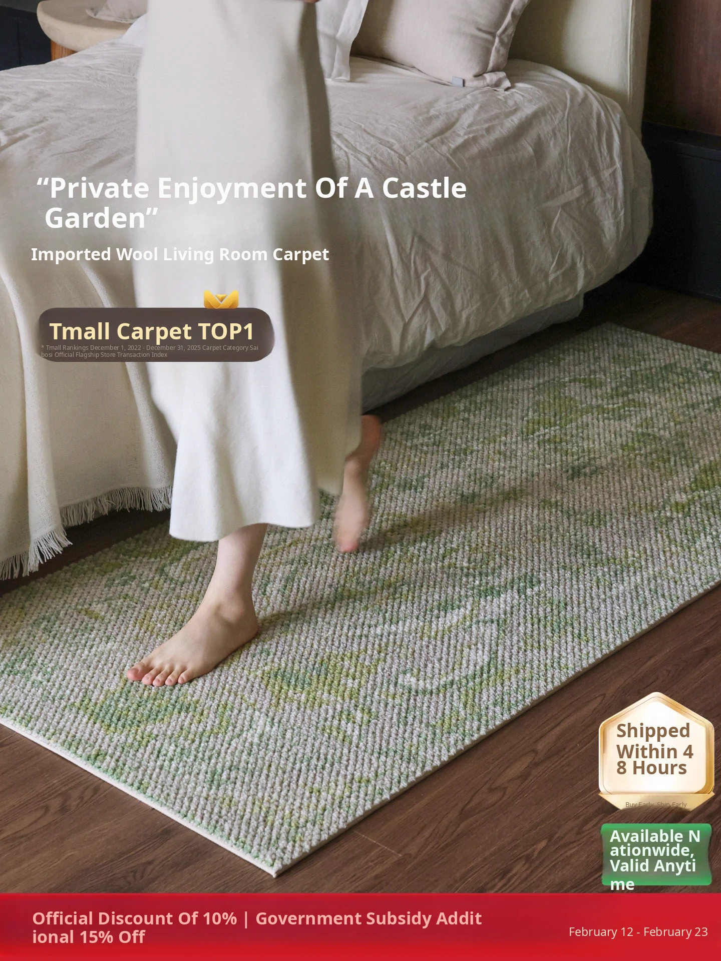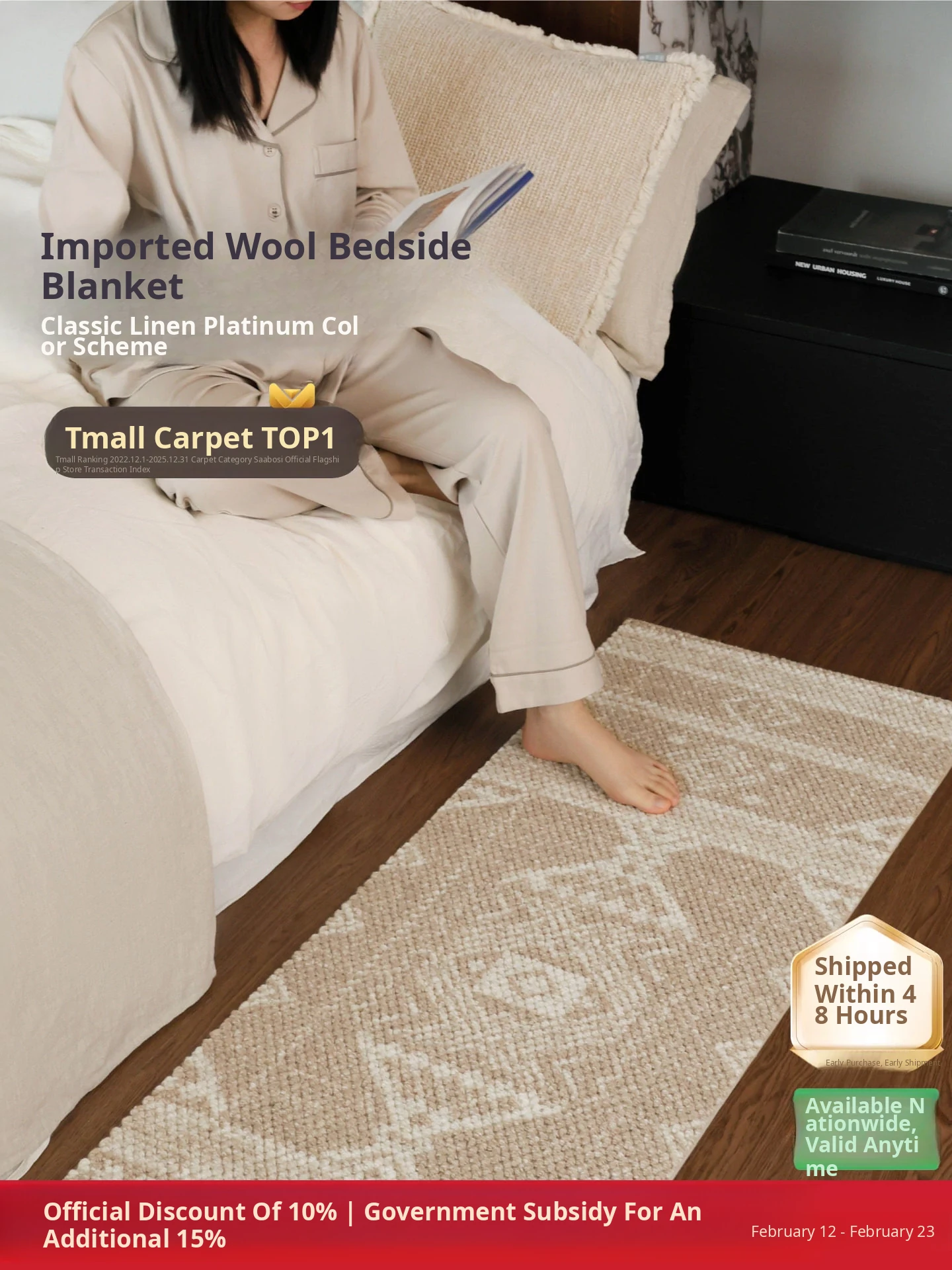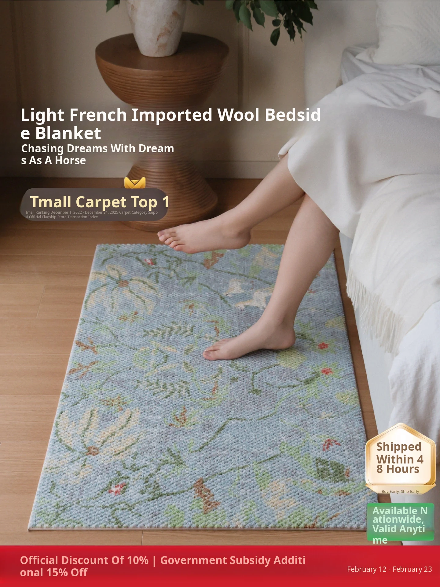 Seipos Heritage Series Imported All-Wool Bedside Rug - No Glue, No Formaldehyde, Luxurious and Elegant Bedroom Carpet