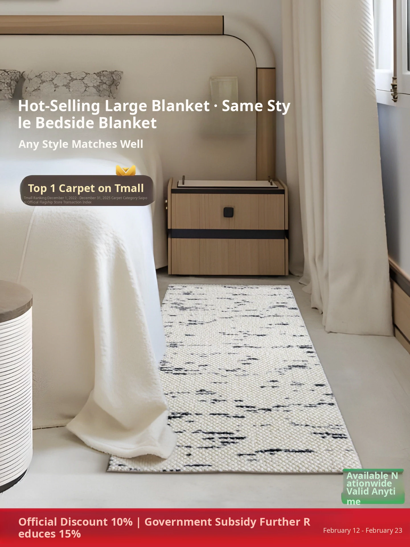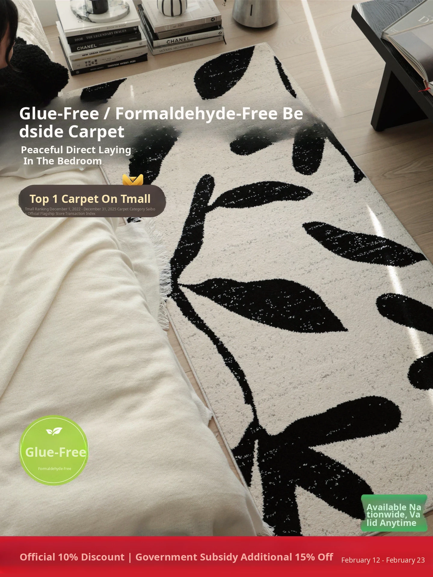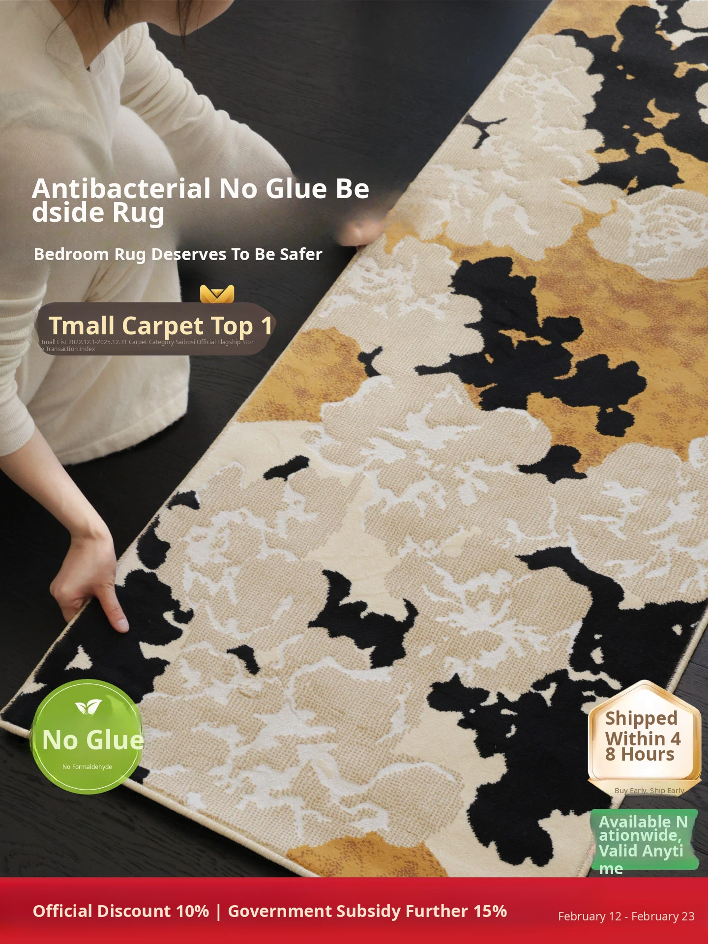 Sybos Formaldehyde-Free Antibacterial No Glue Bedside Rug - Luxurious Lightweight Bedroom and Living Room Carpet for a Sophisticated Touch in Your Home Retreat