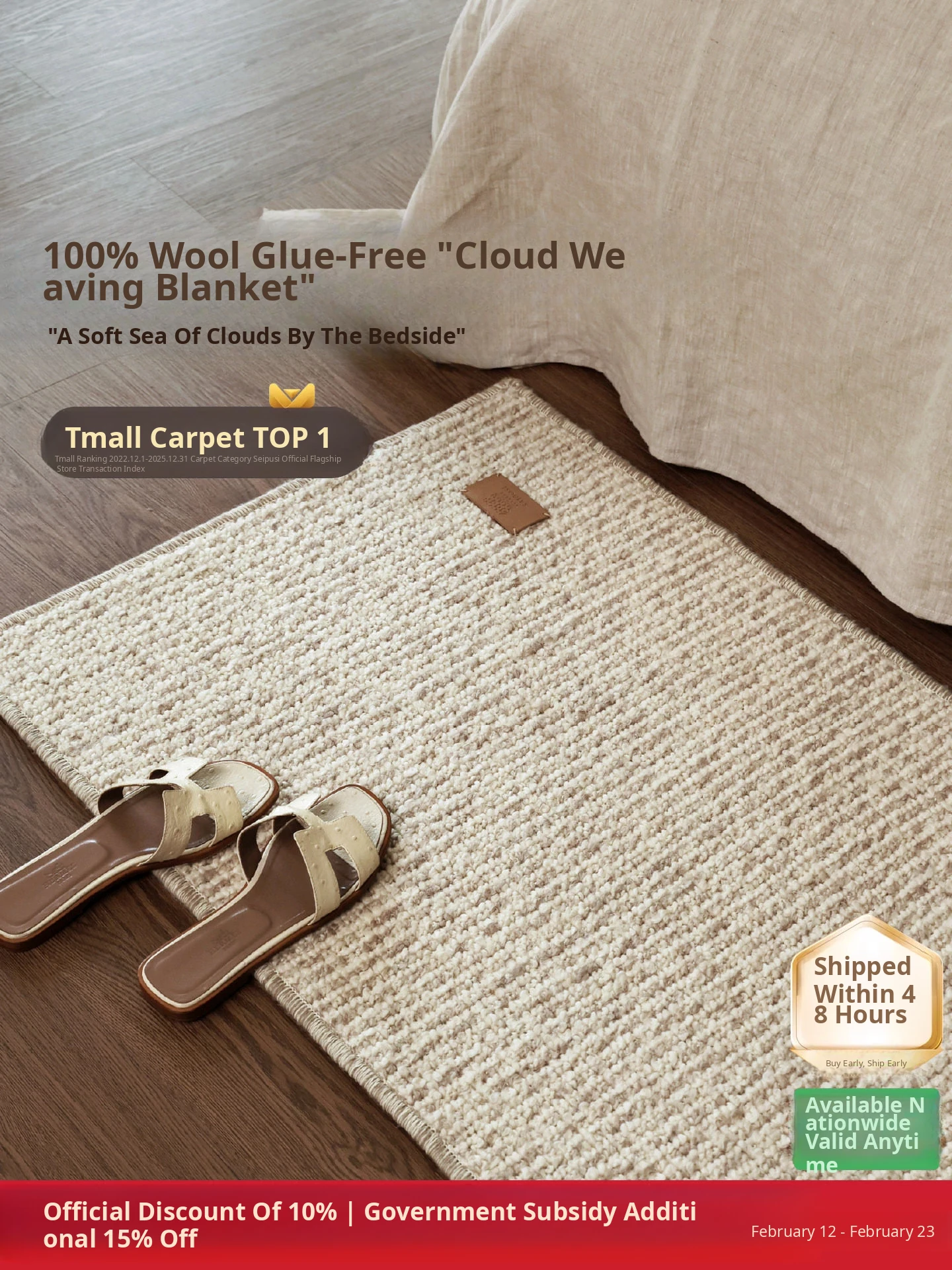 Seabos All-Wool No Glue Cloud Weave Throw Blanket - Formaldehyde-Free Luxurious Bedroom Carpet, Perfect for Bedside, Elegant Window Seats, and Foot of the Bed.