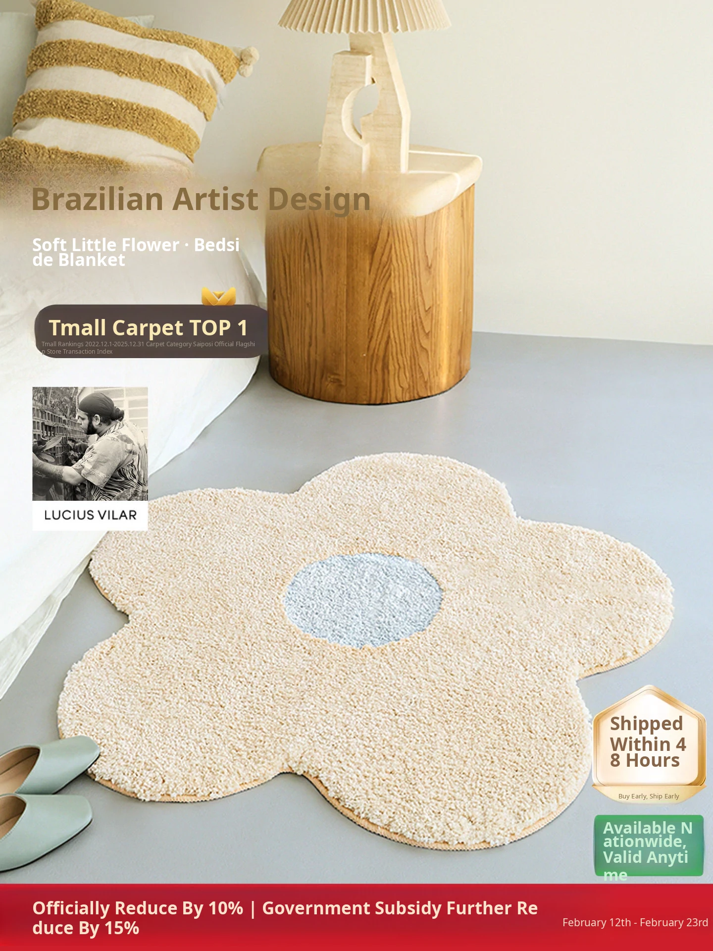 Sibos Brazilian Artist Series Unique Shaped Floral Blanket - Machine Washable Bedside Mat for Living Room, Bedroom, and Closet Décor