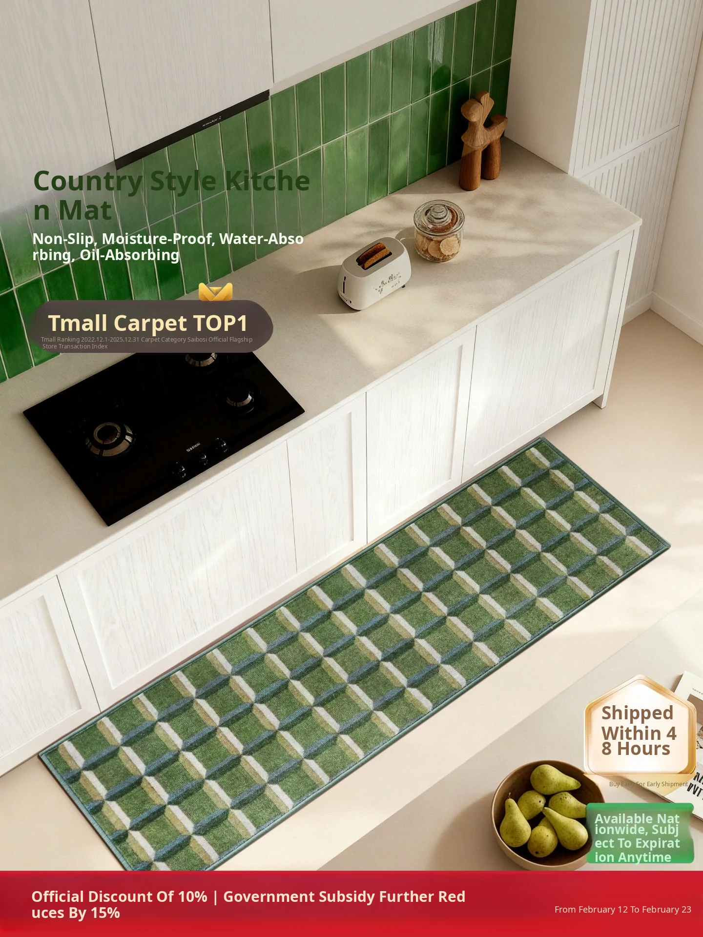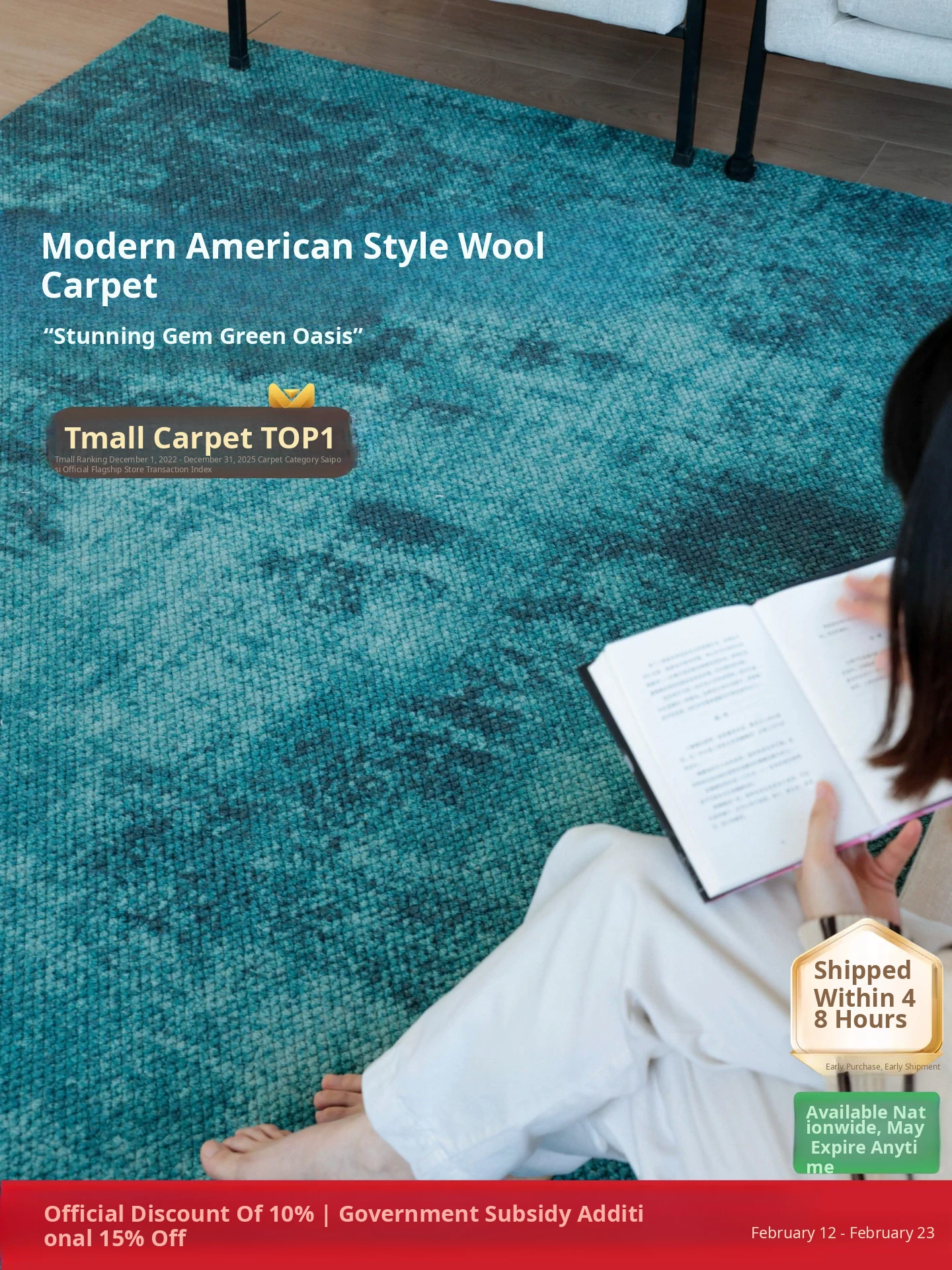 Seaboss Non-Glue, Formaldehyde-Free Carpet - Airy Garden Design for Luxurious Modern French and American Style Living Rooms and Bedrooms - Embrace Serenity with Green Mountain Aesthetics