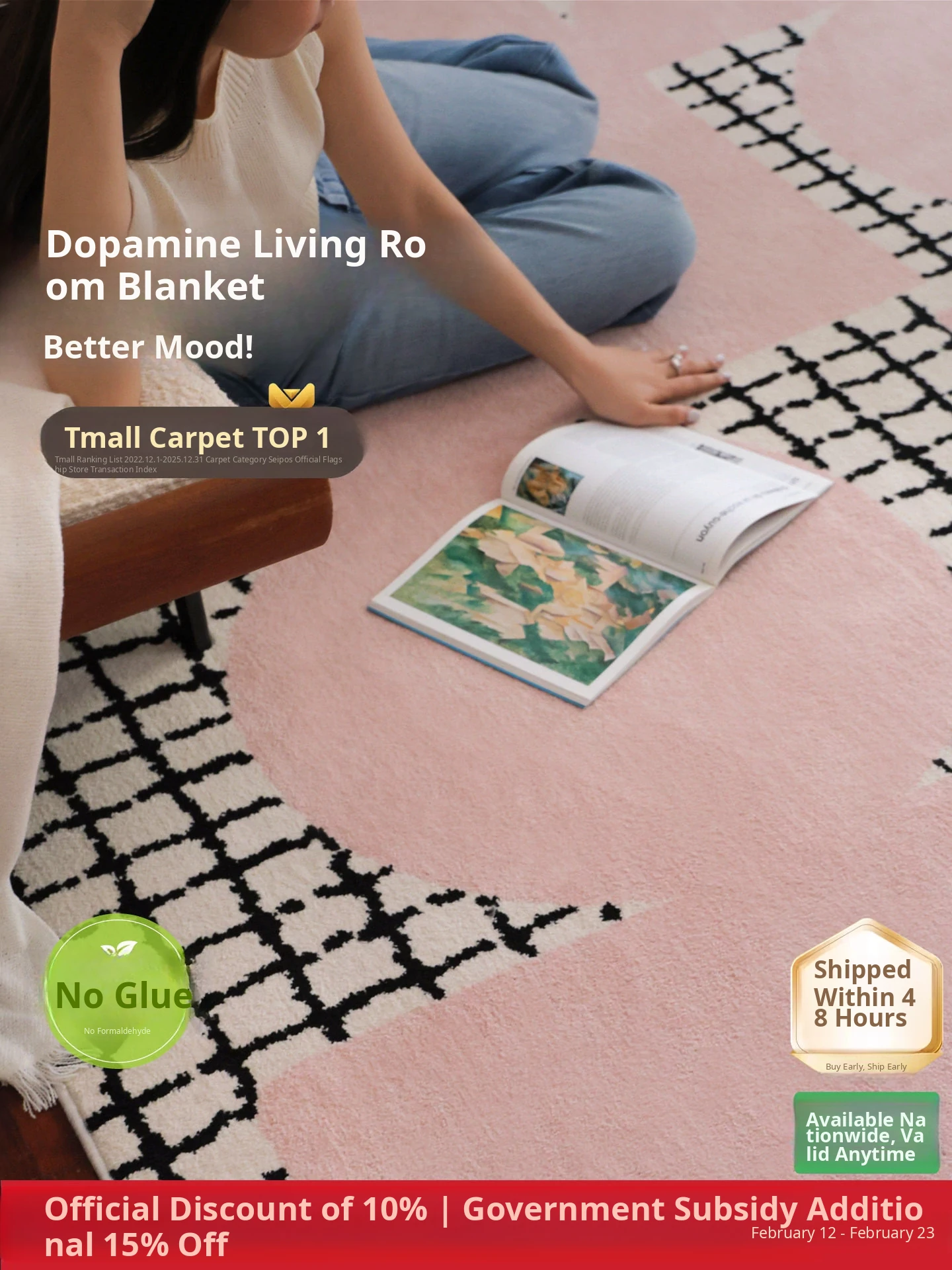 Sypost Dopamine Carpet - Glue-Free, Formaldehyde-Free, Ideal for Children's Rooms, Living Rooms, and Bedrooms - Luxurious and High-End Feel for a Serene Home Environment