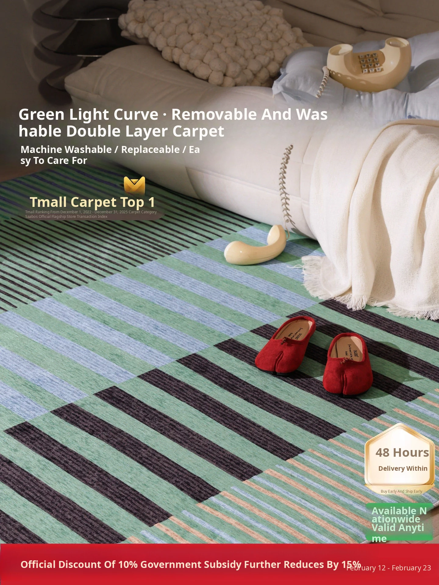 Sybos Green Light Double Layer Detachable Carpet - Luxurious Vintage Style, Machine Washable, Perfect for Sofas, Bedrooms, and Living Rooms. Elevate Your Home Décor with a Touch of Elegance!