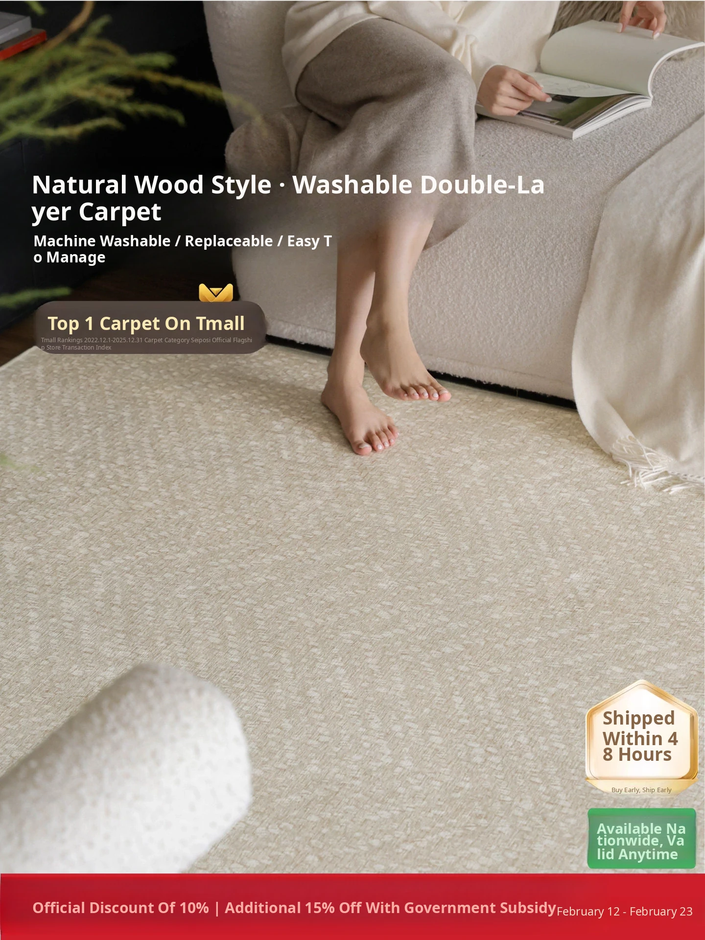 Seipos Cloud Pearl Luxury Removable Double Layer Carpet - Cat Scratch Resistant, Machine Washable, Perfect for Living Room and Bedroom Sofa Decor