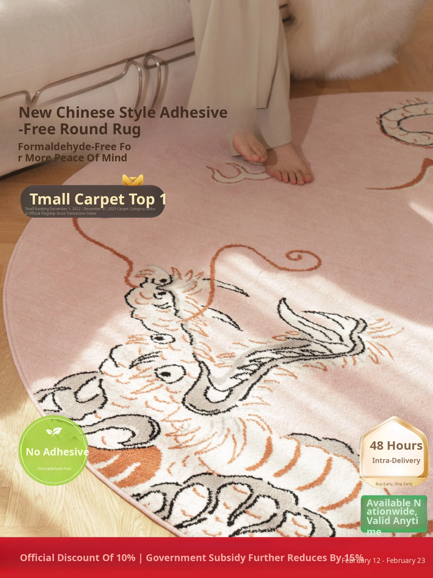 Seamless Round Carpet - Luxurious Barbie Dragon Design for Bedroom, Living Room, and Closet - Perfect Bedside Mat for Elegant Aesthetics in Your Home Retreat