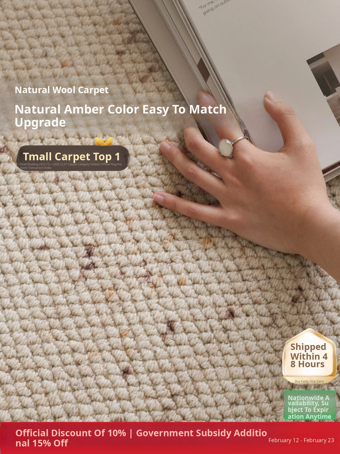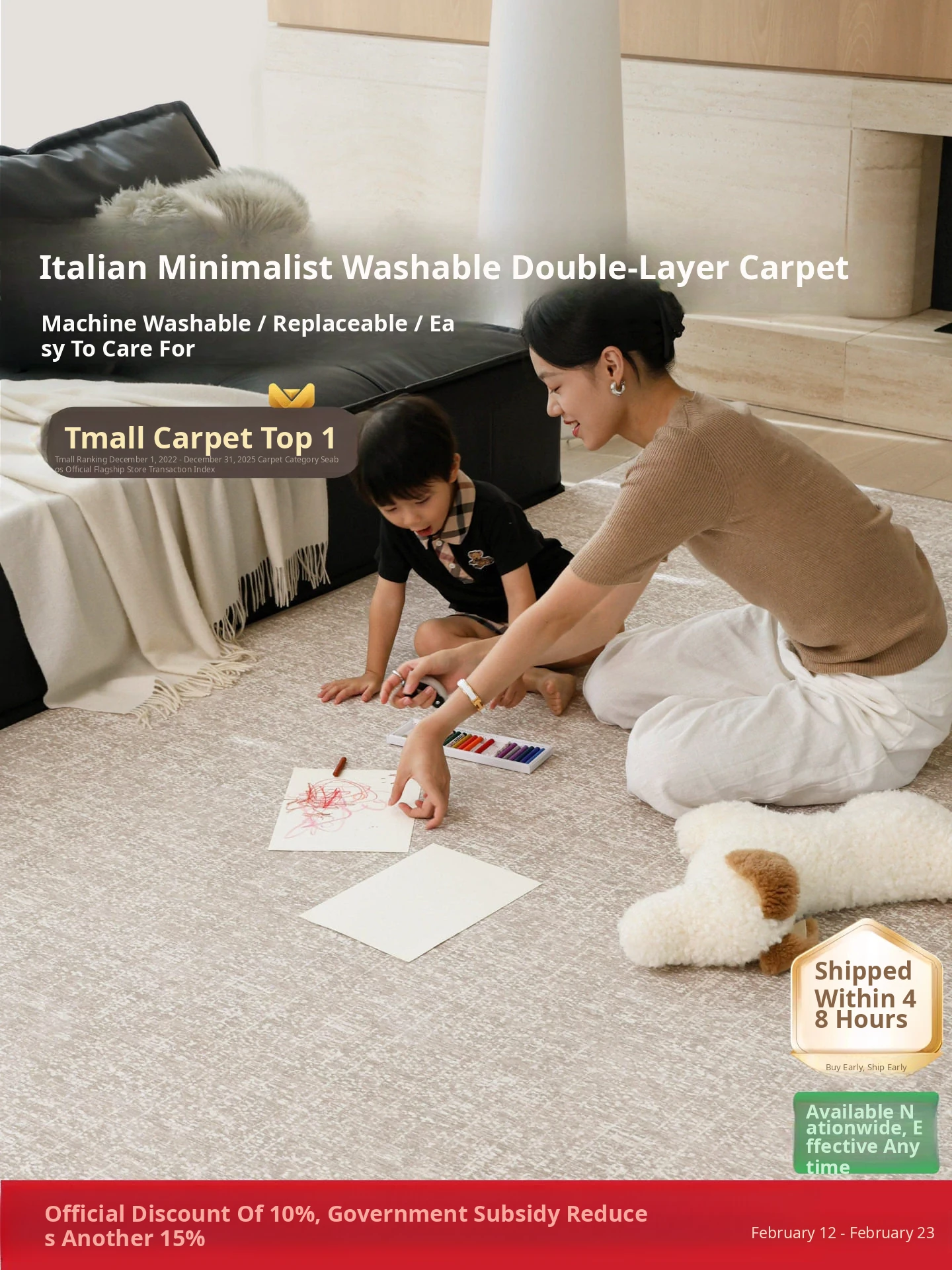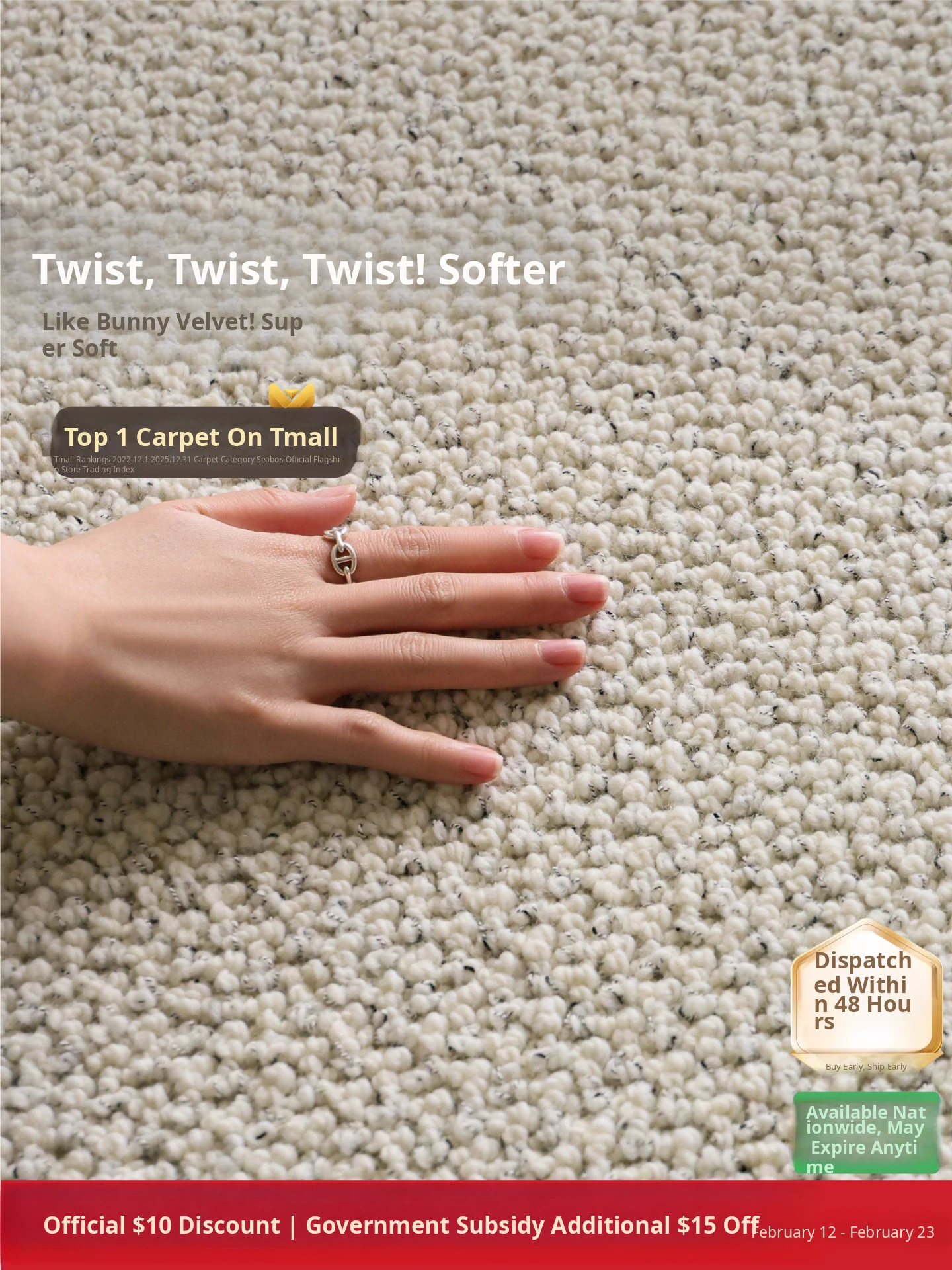 Seaboss Dreamy Pony Imported Wool Carpet - French Cream Style, Luxurious Aesthetic for Living Room, New Year Edition for the Year of the Horse
