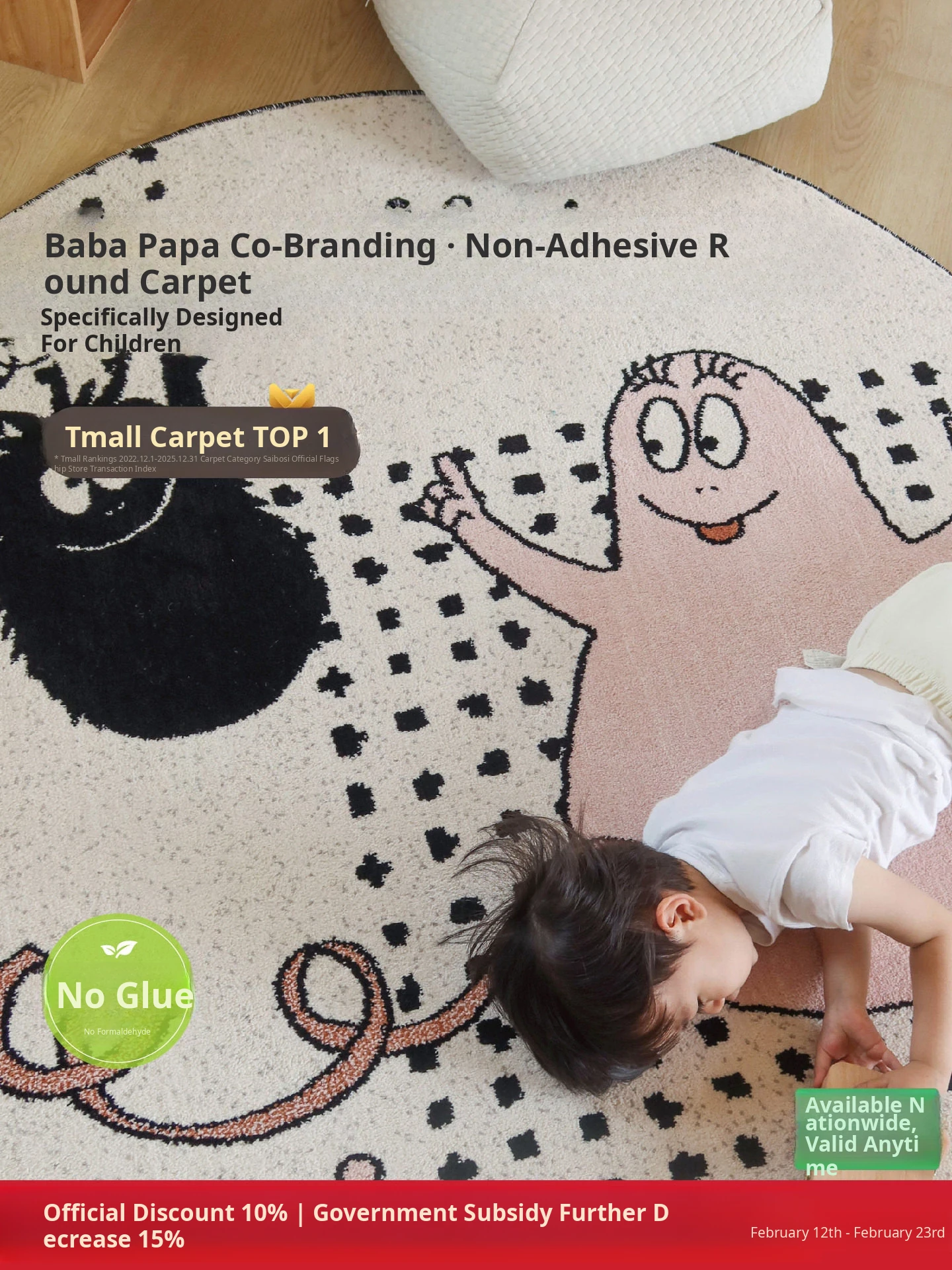 Seabass & Baba Papa Collaboration Non-Adhesive Round Rug for Kids' Room - Perfect for Living Room and Bedroom, Cozy Bedside Mat for a Stylish and Comfortable Home.