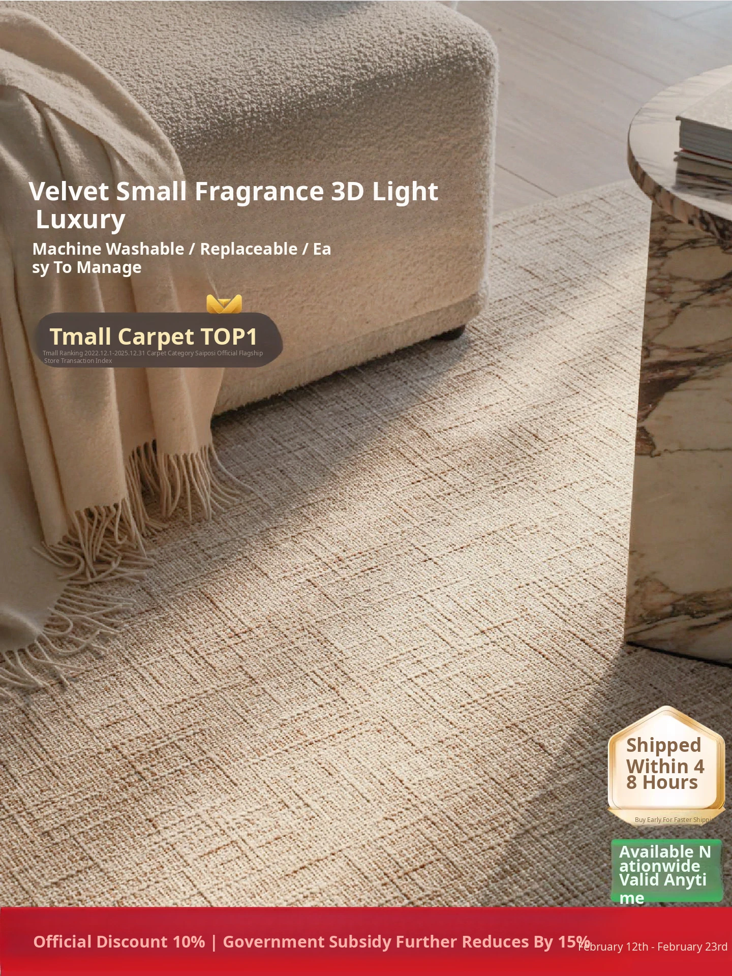 Seabreeze Venice Removable Double-layer Carpet - Minimalist Luxury, Machine Washable, Perfect for Bedroom and Living Room
