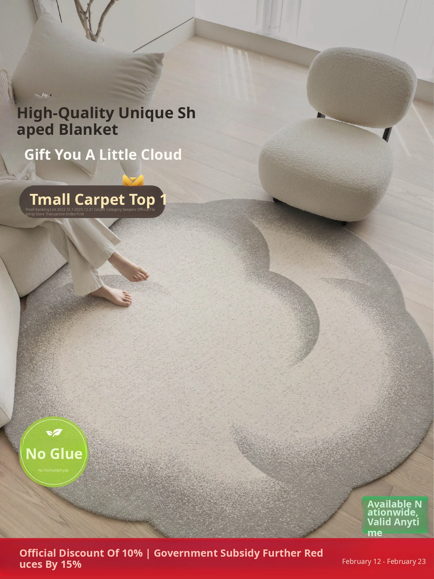 Sibos Small Cloud-Shaped No Glue Round Carpet – Premium Minimalist Design for Living Room, Bedroom, Bedside, and Closet