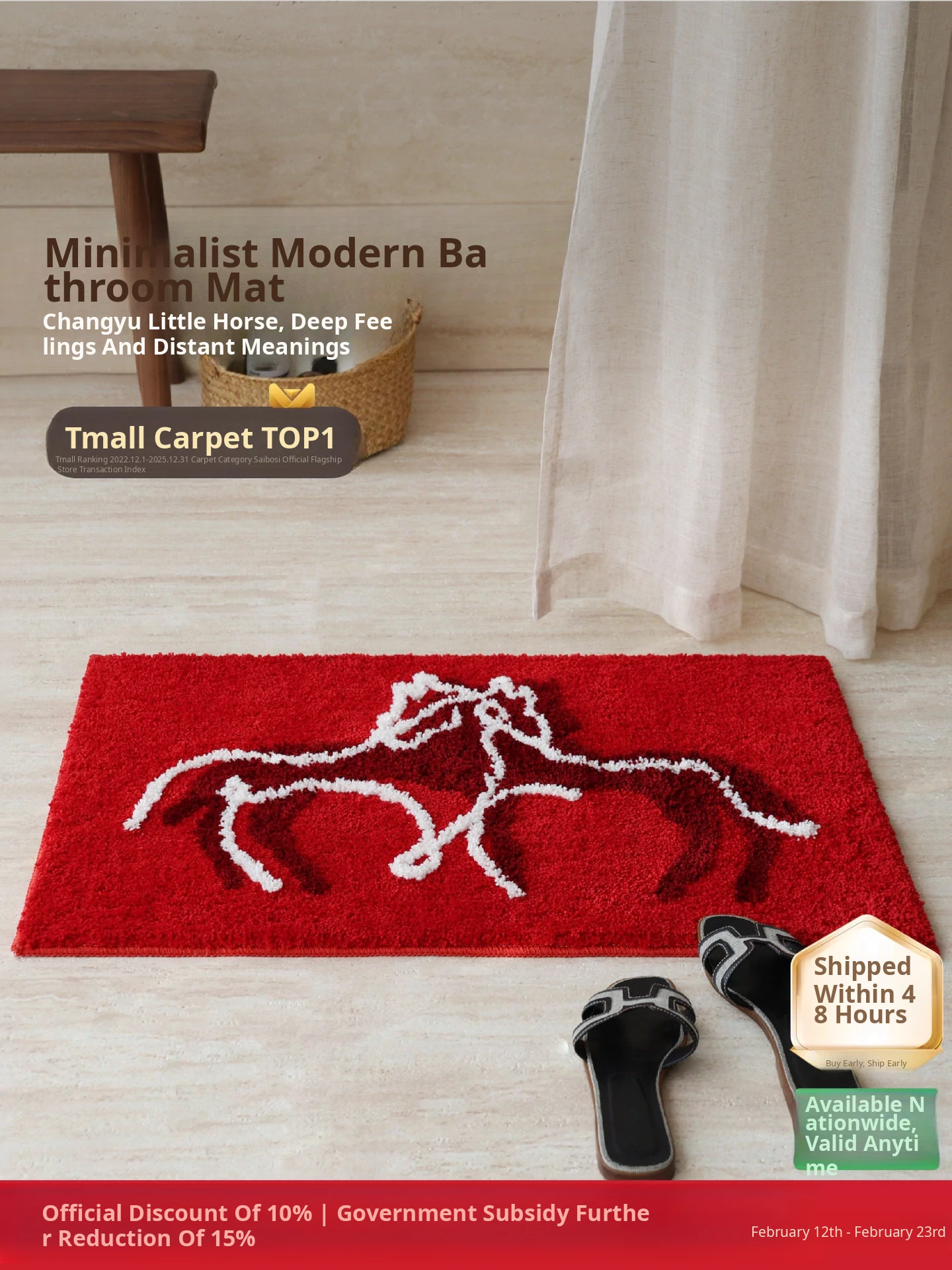 Sai Bosi Charming Jade Horse | Non-Slip, Absorbent Bathroom Mat for Home Use, Ideal for Entrance and Toilet - Perfect for 2026 New Year Celebrations!