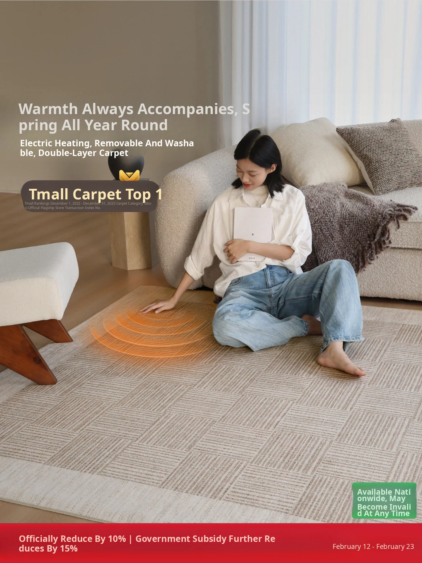 Graphene Heating Mat - Removable & Washable Double-Layer Carpet for Living Room - Stylish and Functional Heated Area Rug - Perfect for Cozy Warmth and Easy Maintenance