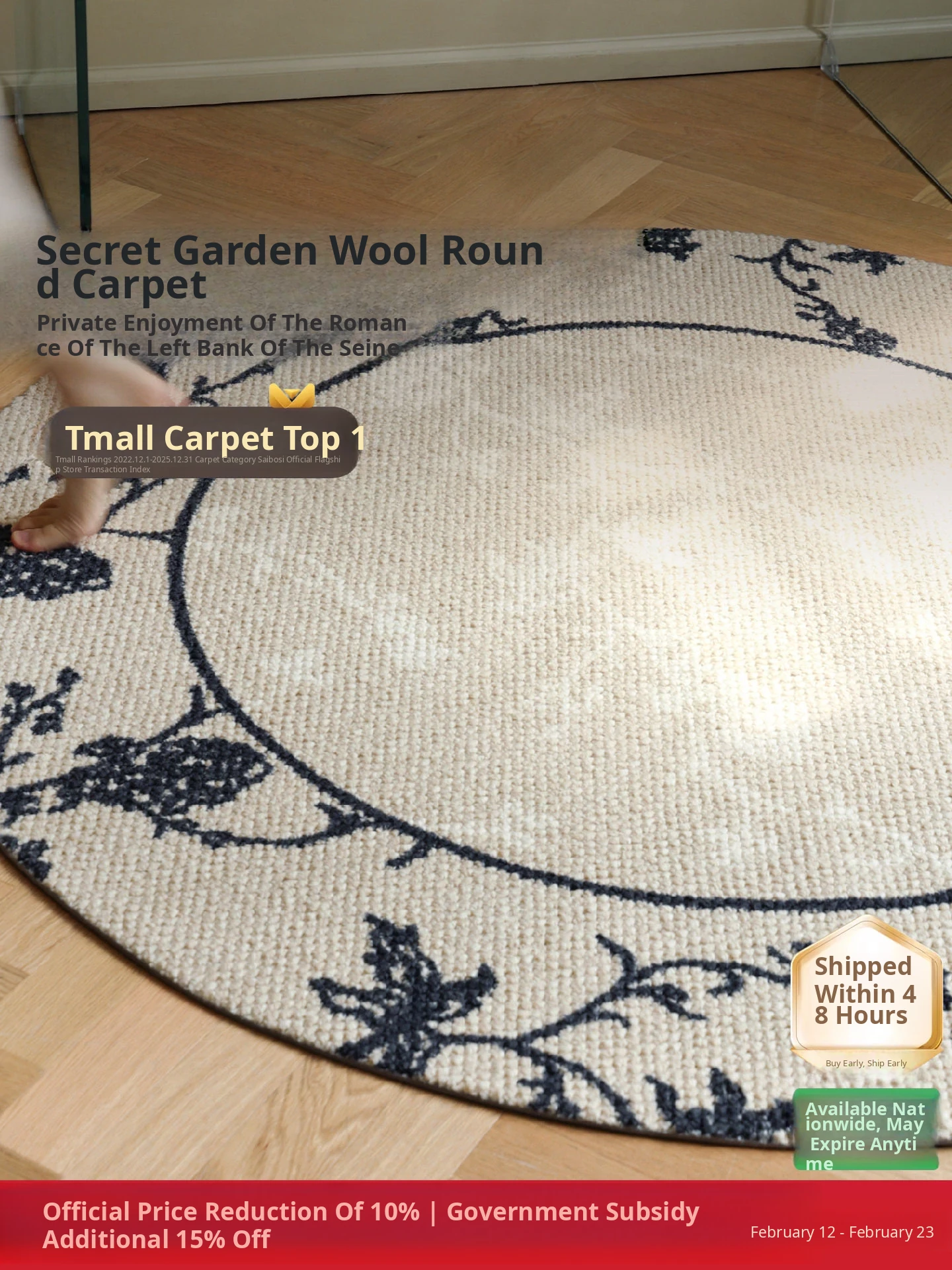 Vintage Luxury Round Carpet - Seabass Wool "Secret Garden" Design for Bedroom, Bedside, and Closet - Elevate Your Space with French Elegance