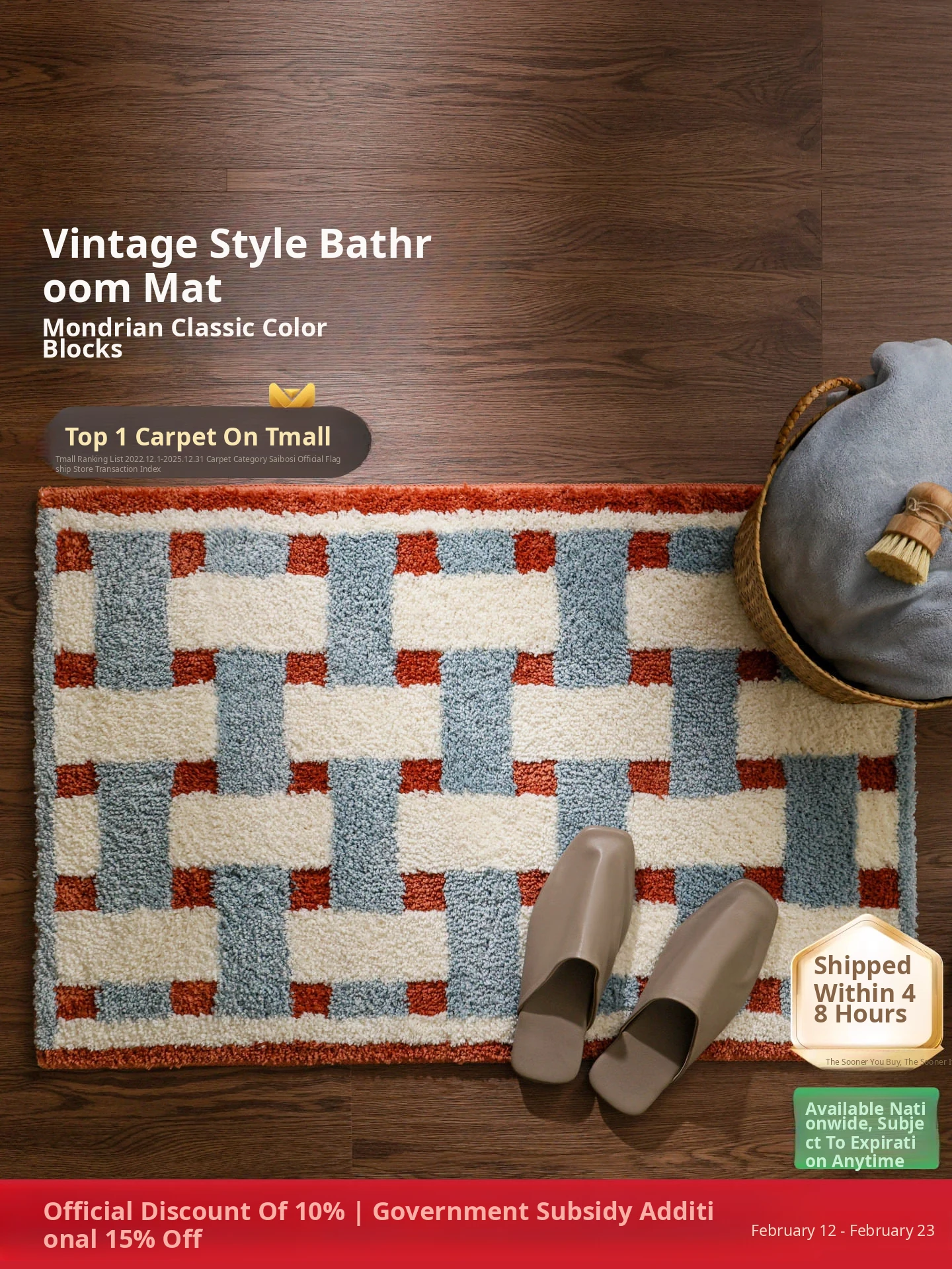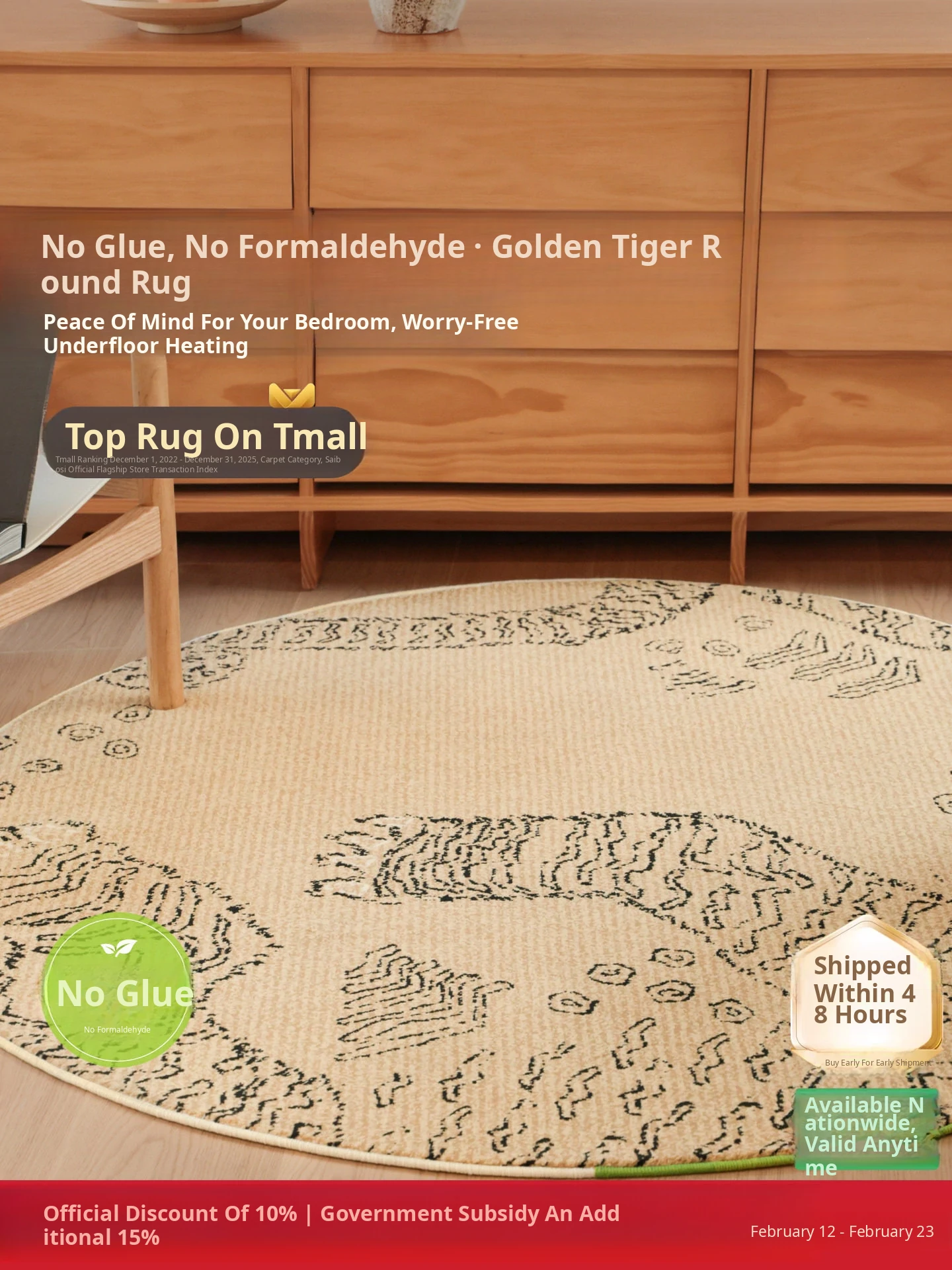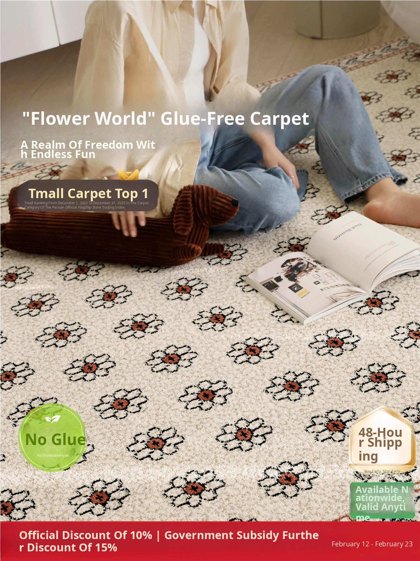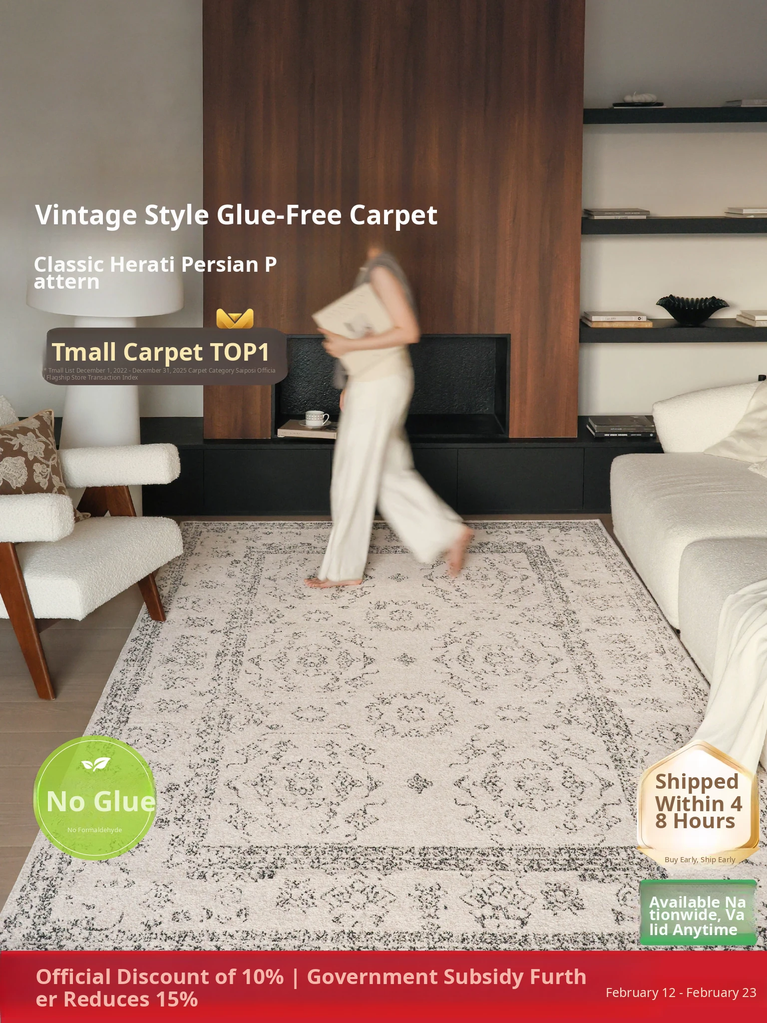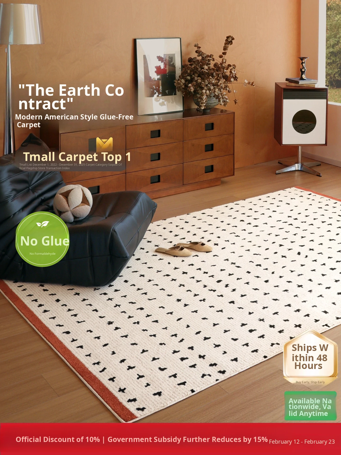 Seaboss Waterproof Antibacterial No-Glue Carpet - Formaldehyde-Free, Vintage-Style American Luxury for Living Rooms and Bedrooms