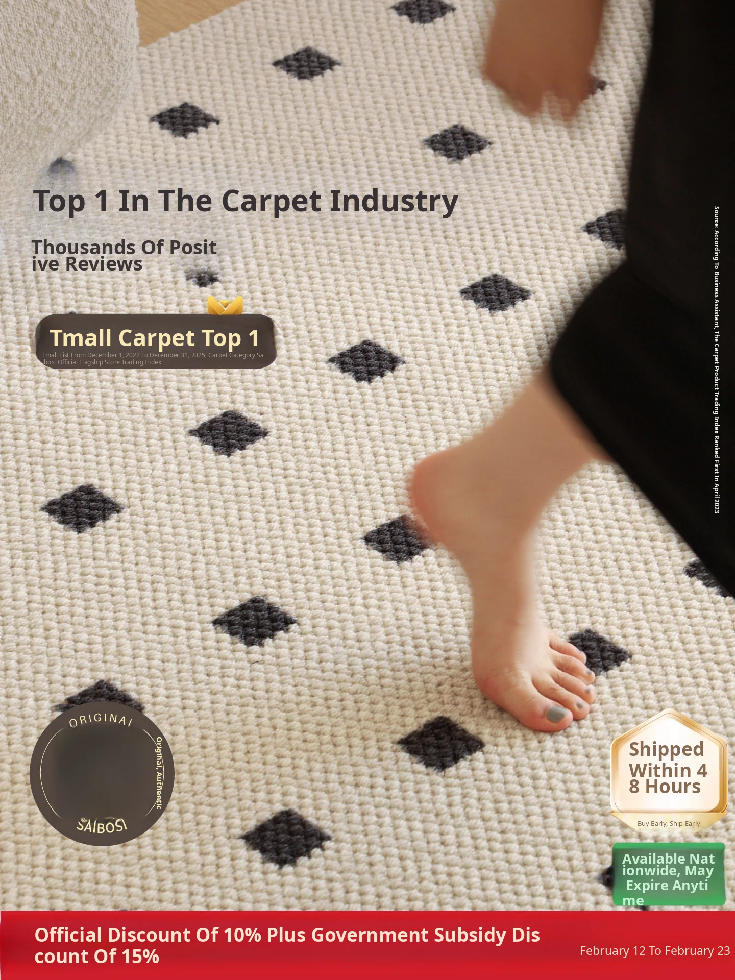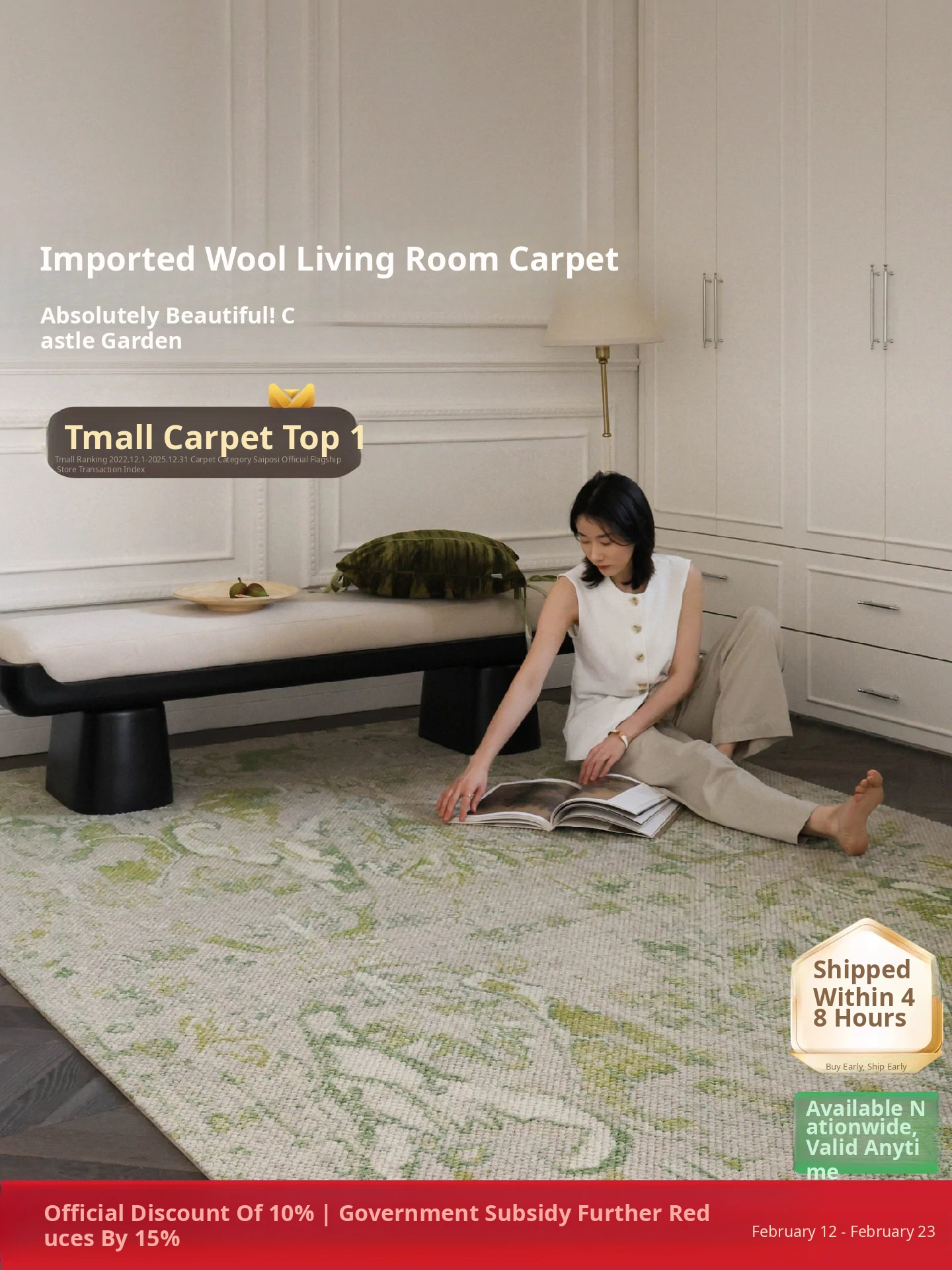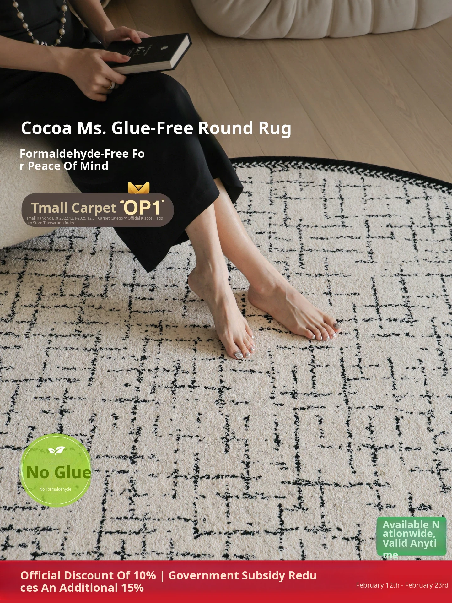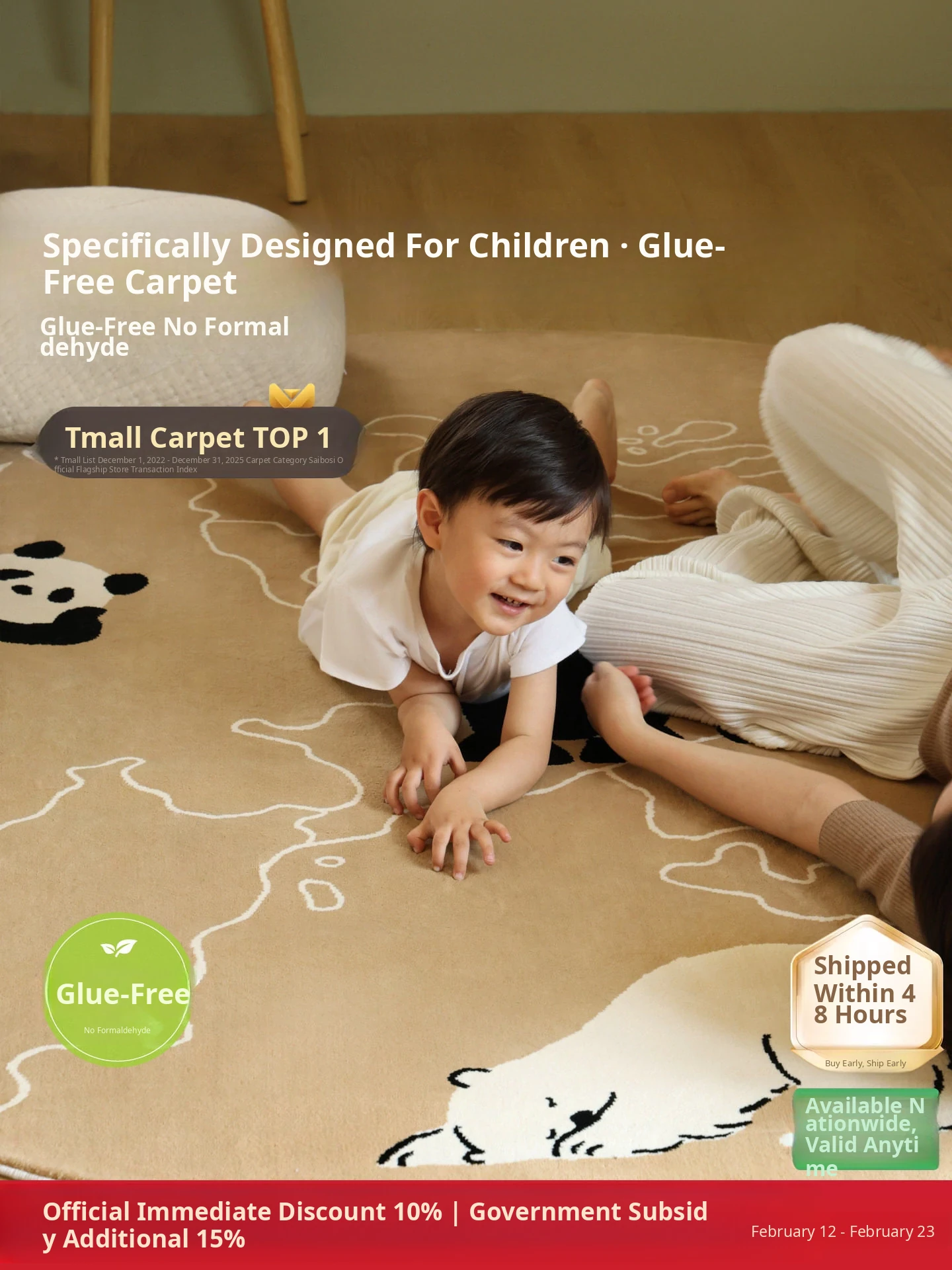Seibos Snowy Secret Realm Non-Adhesive Carpet - Formaldehyde-Free, 3D Embossed Design, Versatile Italian Cream Style for Luxurious Bedrooms and Living Rooms.