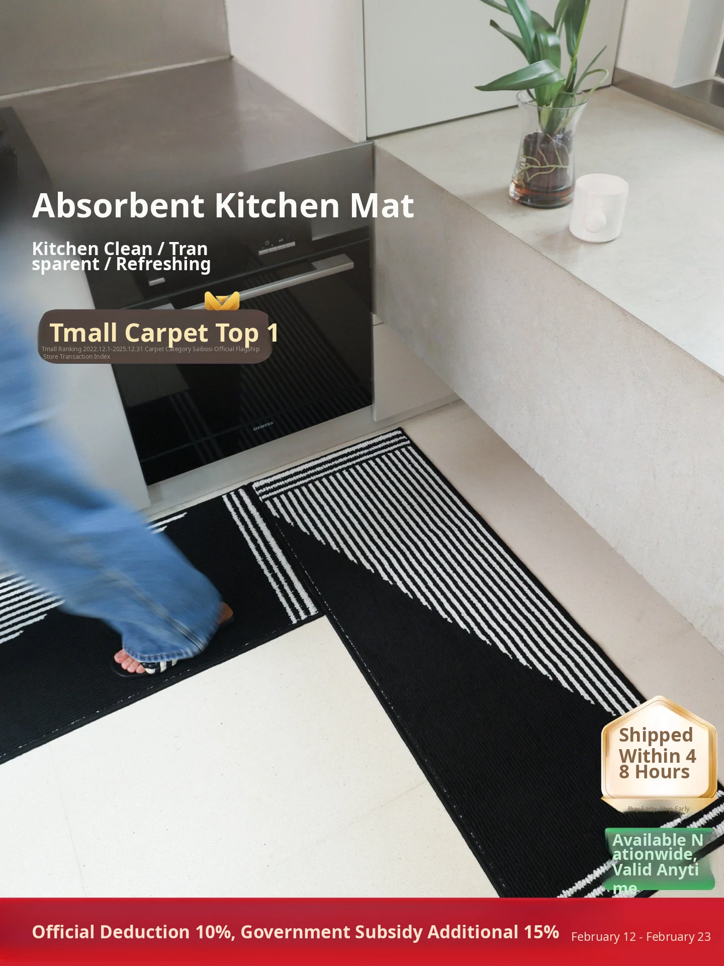 Sibos Kitchen Mat - Premium Non-Slip, Water-Absorbent, Oil-Resistant, and Machine Washable Door Mat - Modern Minimalist Long Runner Rug for a Clean and Stylish Kitchen