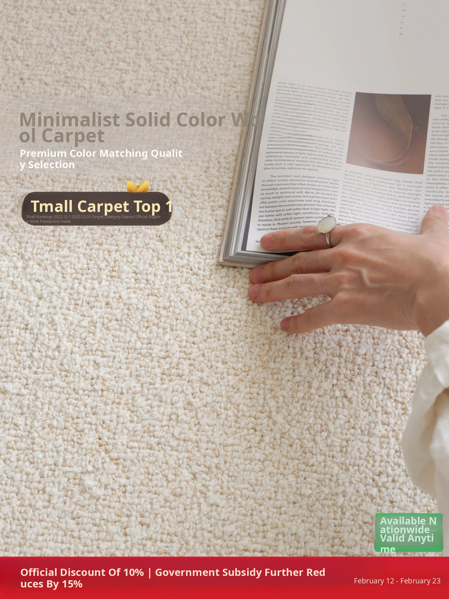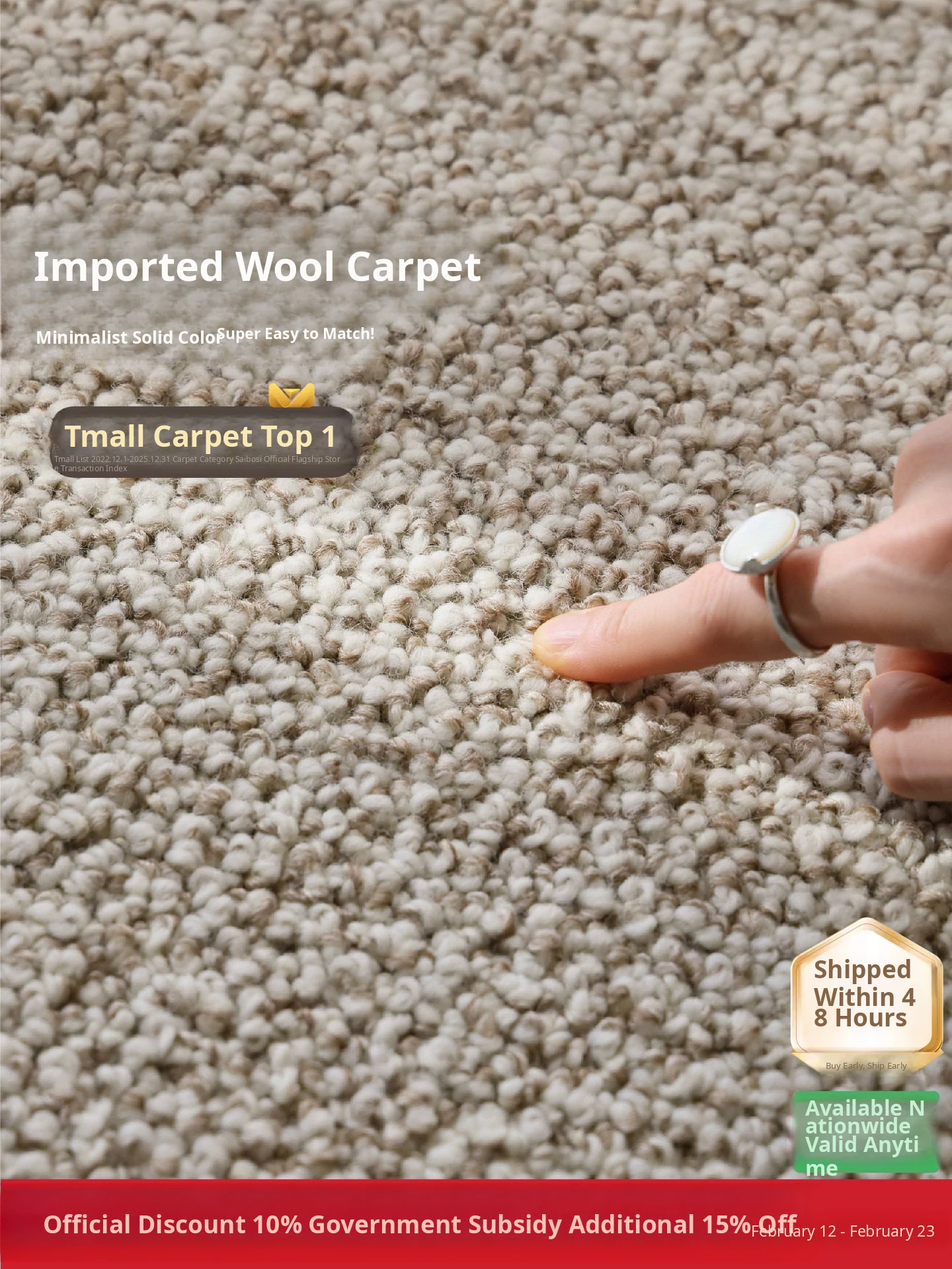 Premium Seipos Quality! Imported Wool Carpet in Truffle Plush - Luxurious Minimalist Design for Living Room and Bedroom.