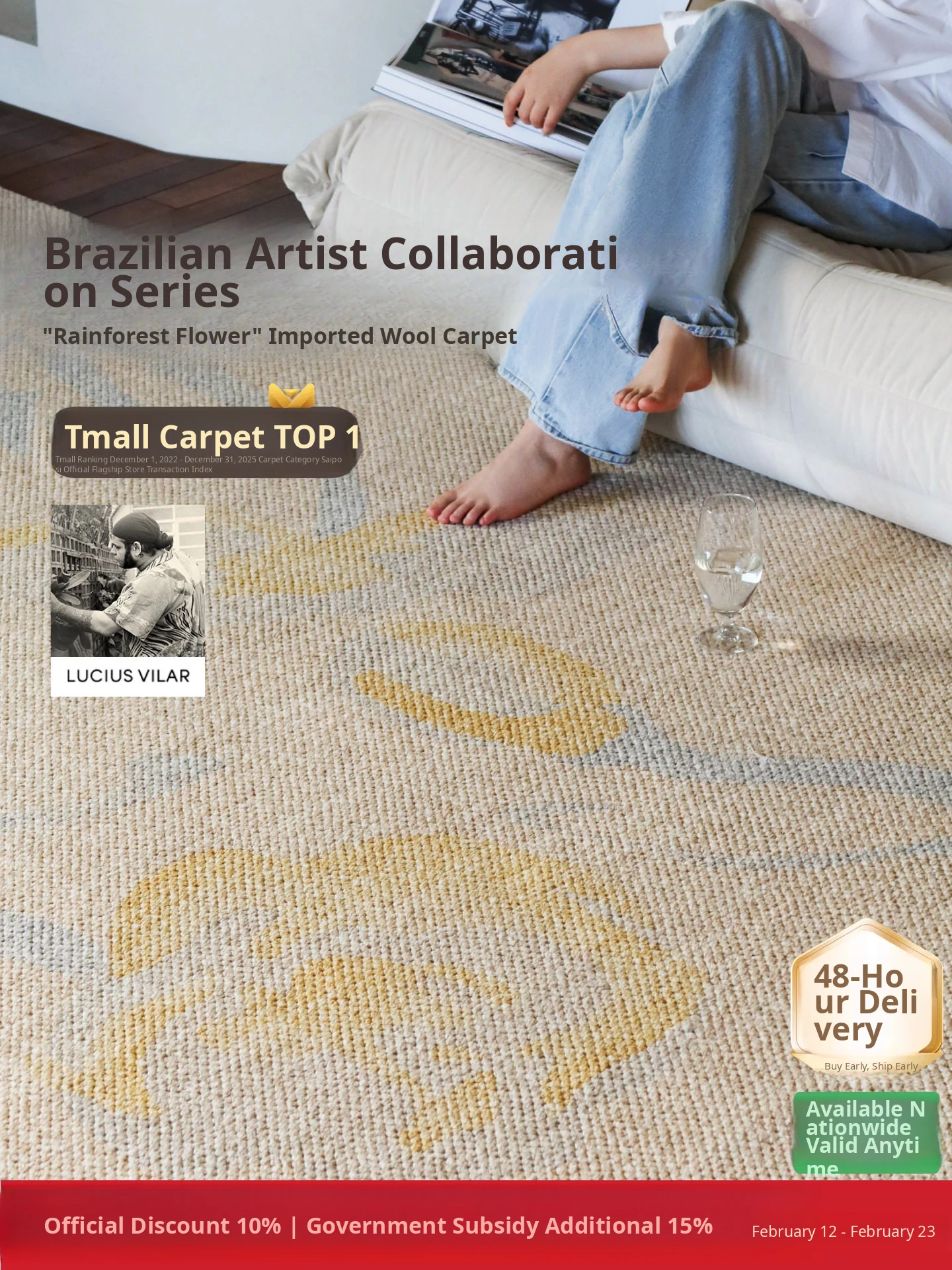 Exclusive Collaboration: Brazilian Artist-Inspired Rainforest Floral Imported Wool Rug – Elevate Your Living Room or Bedroom with Luxurious Comfort and Style