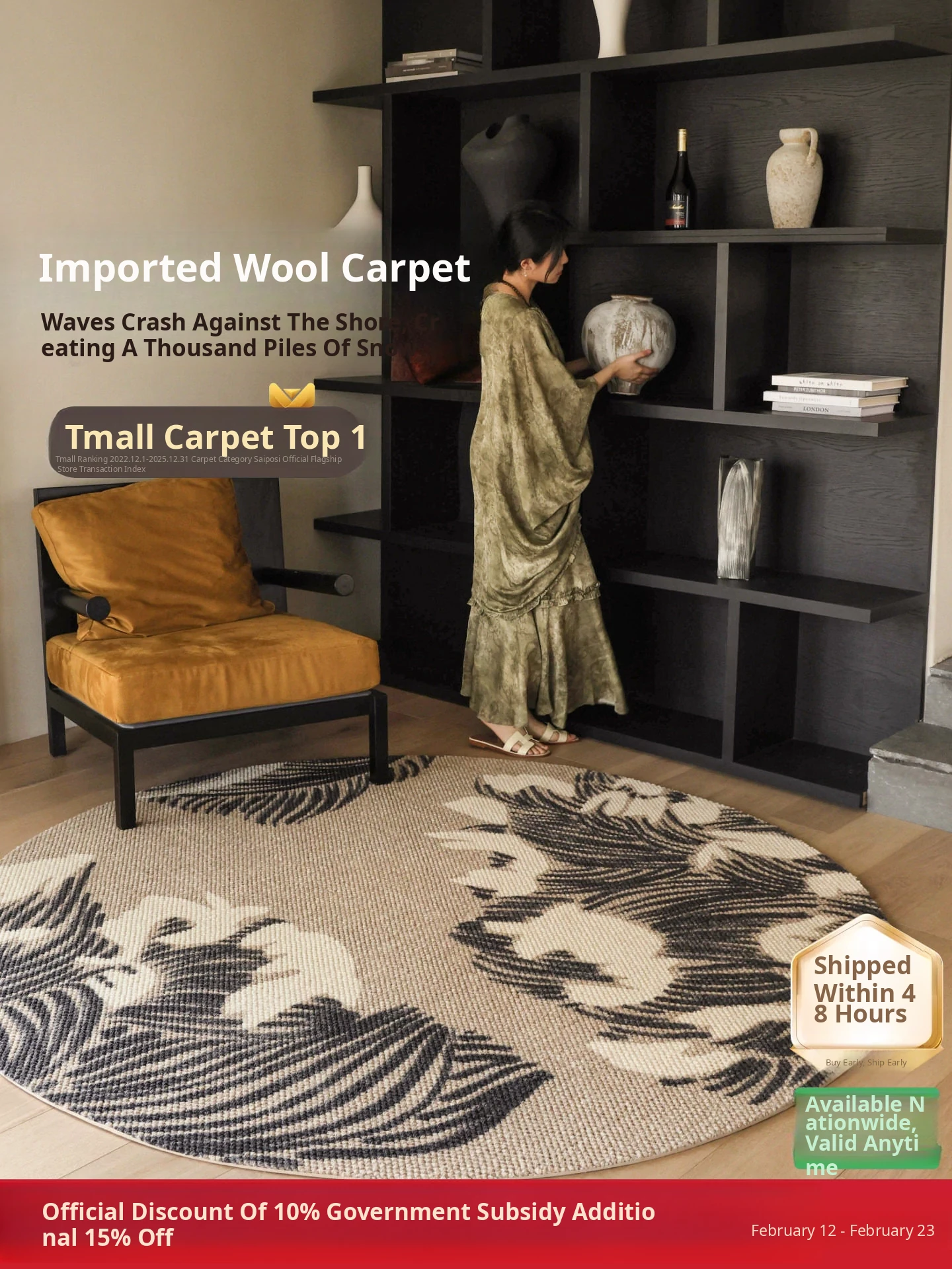 Imported Saibosi Yellow River Rhyme Series Wool Carpet - Luxurious Mid-Century Modern Design for Living Room, Sofa & Bedroom Décor