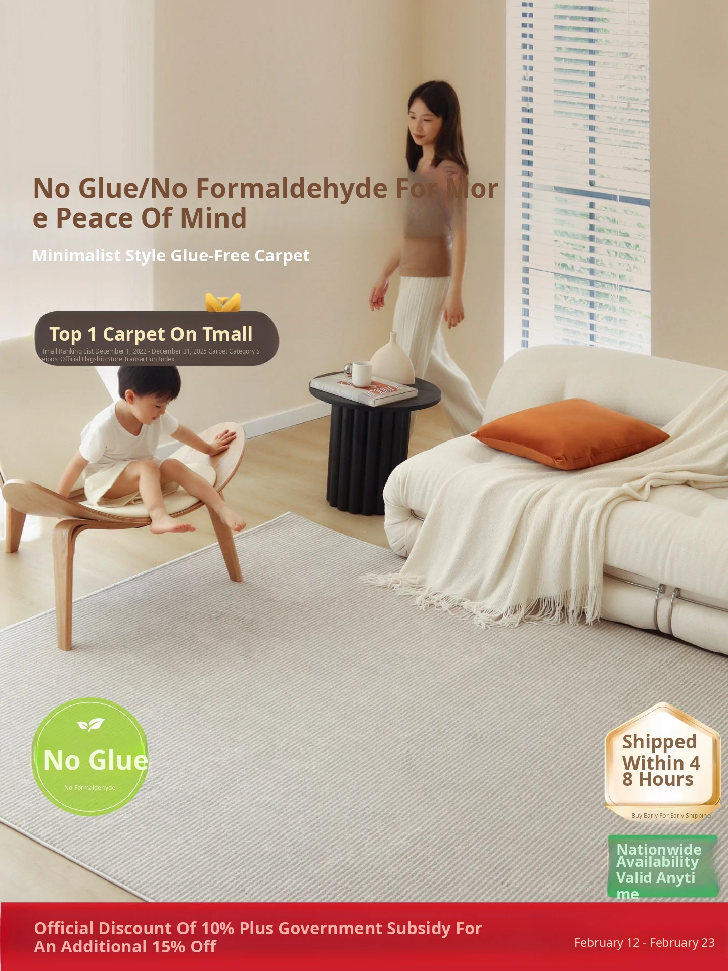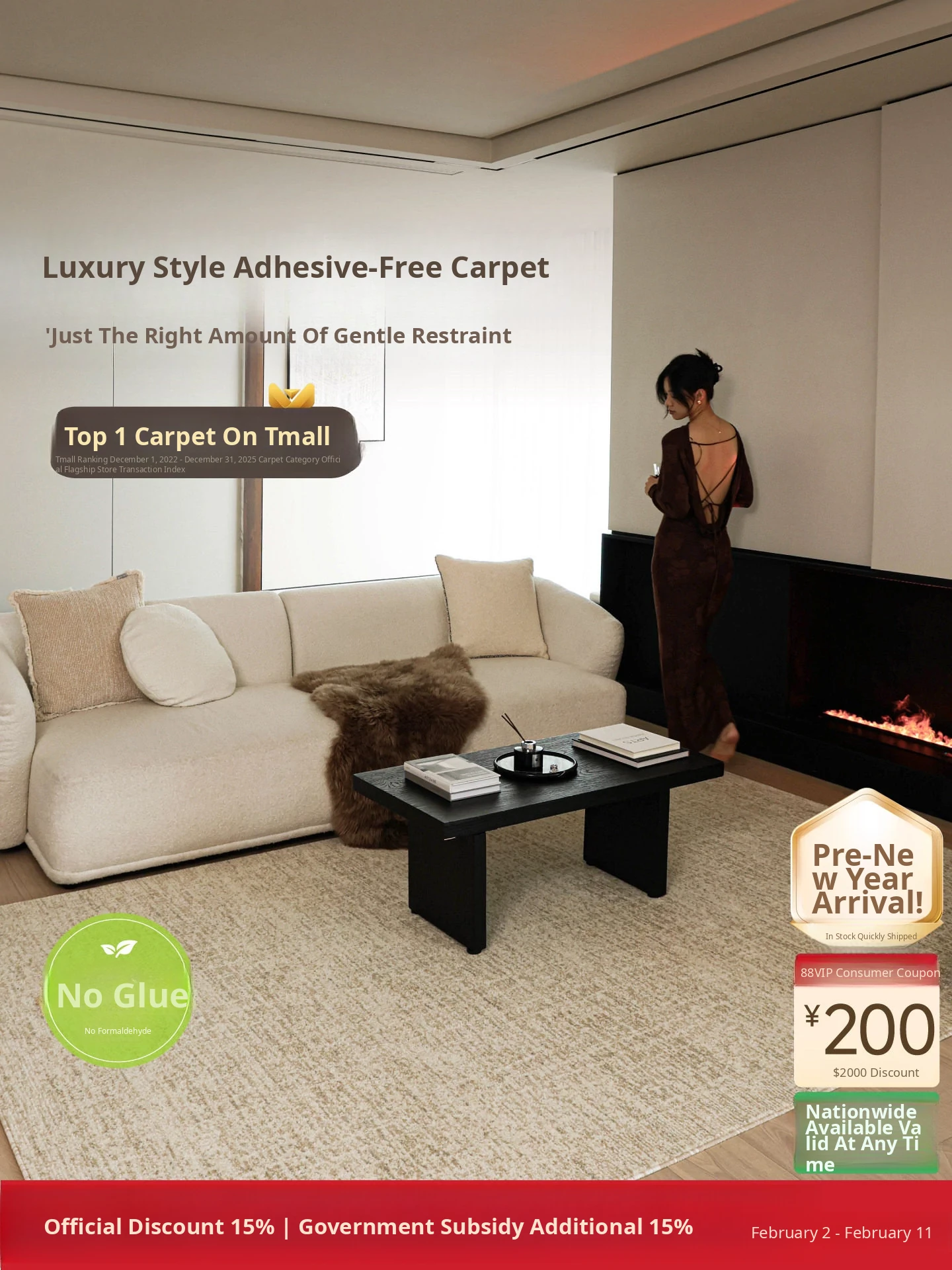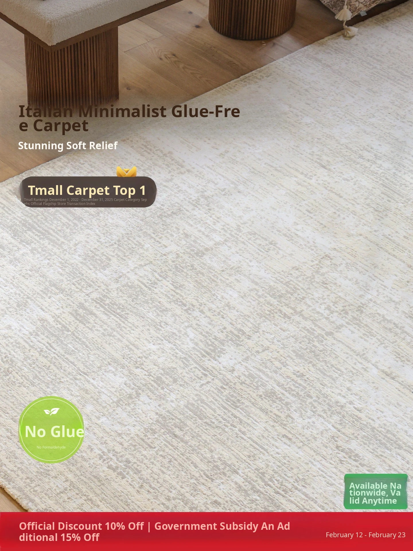 Sibosi Gold Veil Non-Adhesive Carpet - Formaldehyde-Free, Creamy Italian Minimalist Design for a Chic and Versatile Touch in Bedrooms and Living Rooms.