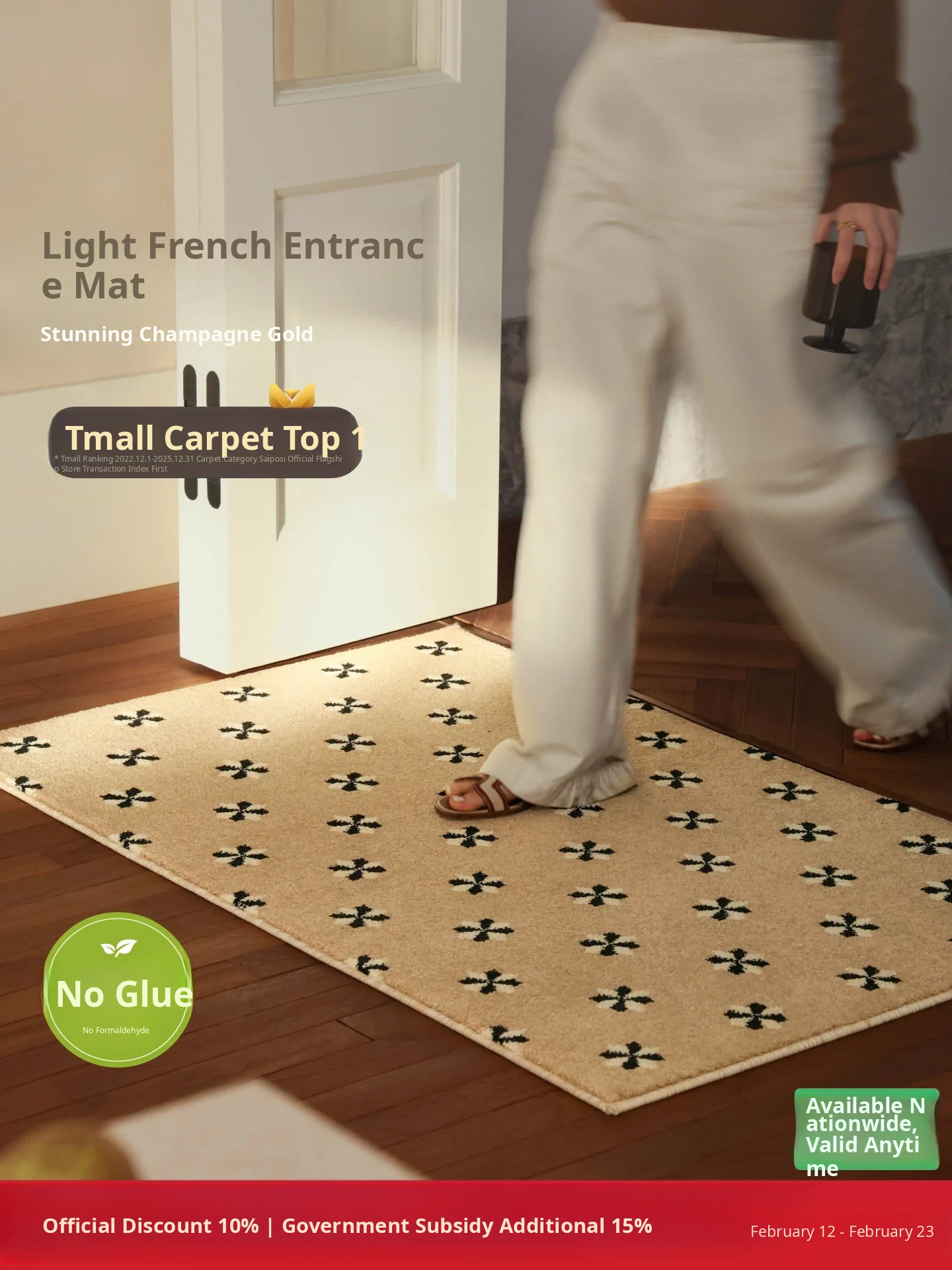 Stunning Champagne Gold Welcome Mat! French-style Non-adhesive Entrance Rug for Your Home - Perfect for Cozy Getaways and Elegant Entrances.