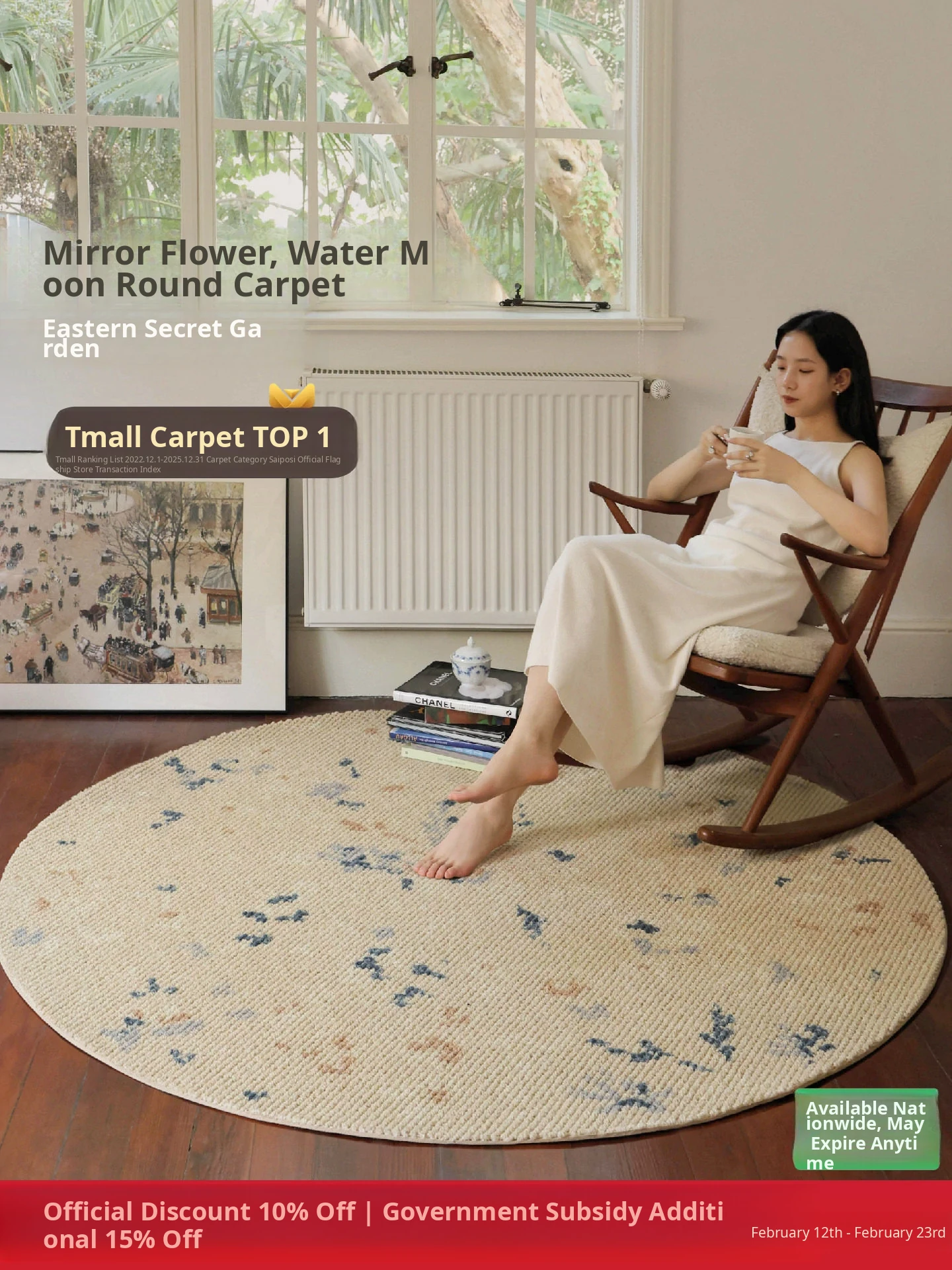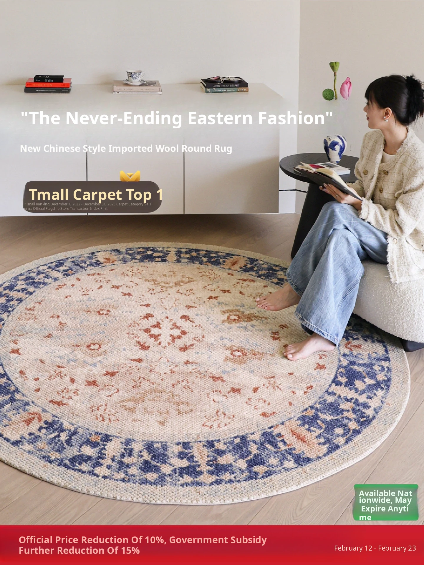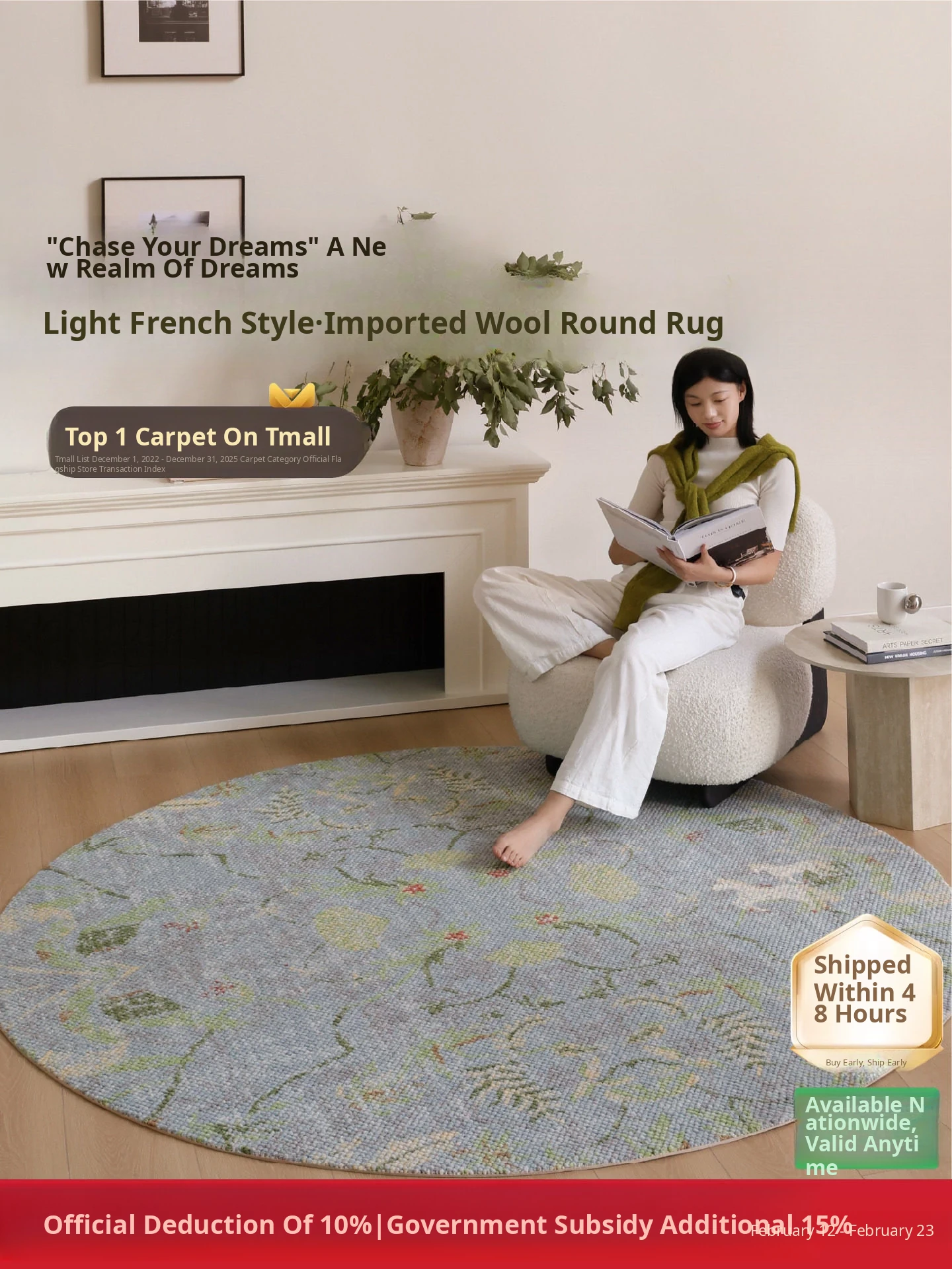 Seaboss Dream Chaser Imported Wool Round Carpet - Rustic Cream Bedroom Bedside Rug, New Design for the Year of the Horse