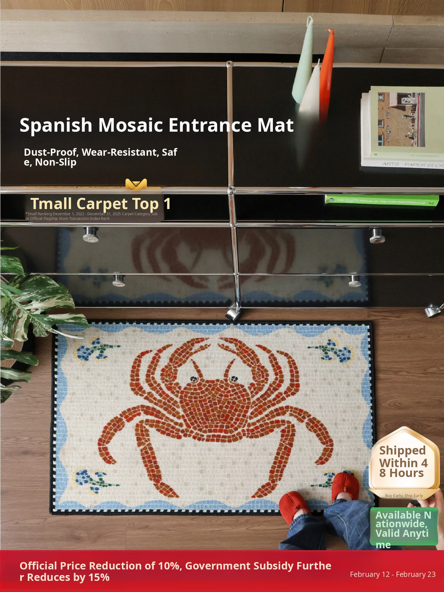 Elegant Seabass Red Crab Door Mat – Non-Slip Home Entrance Rug for the New Year, Vintage Style, Perfect for Your Entryway!