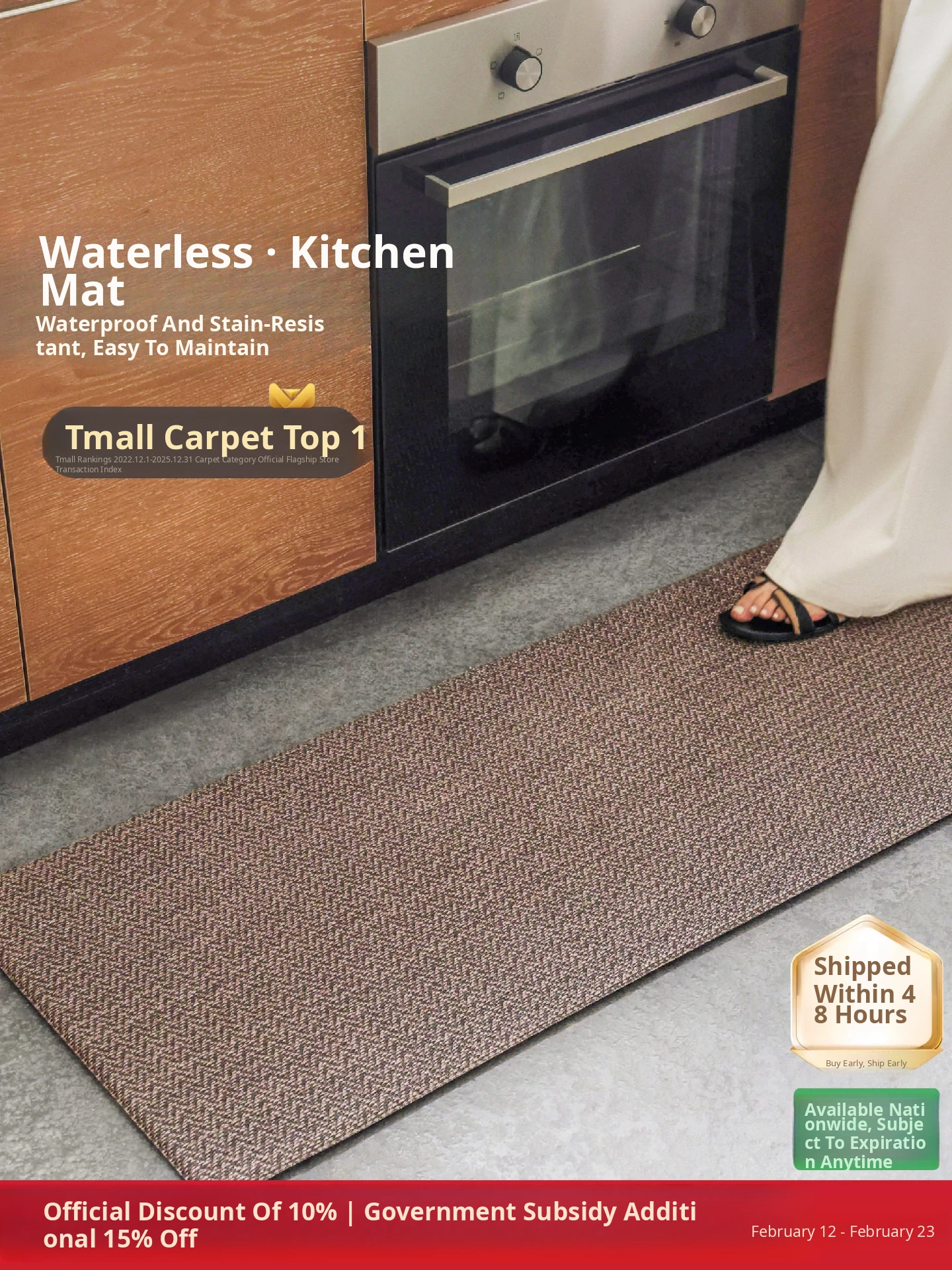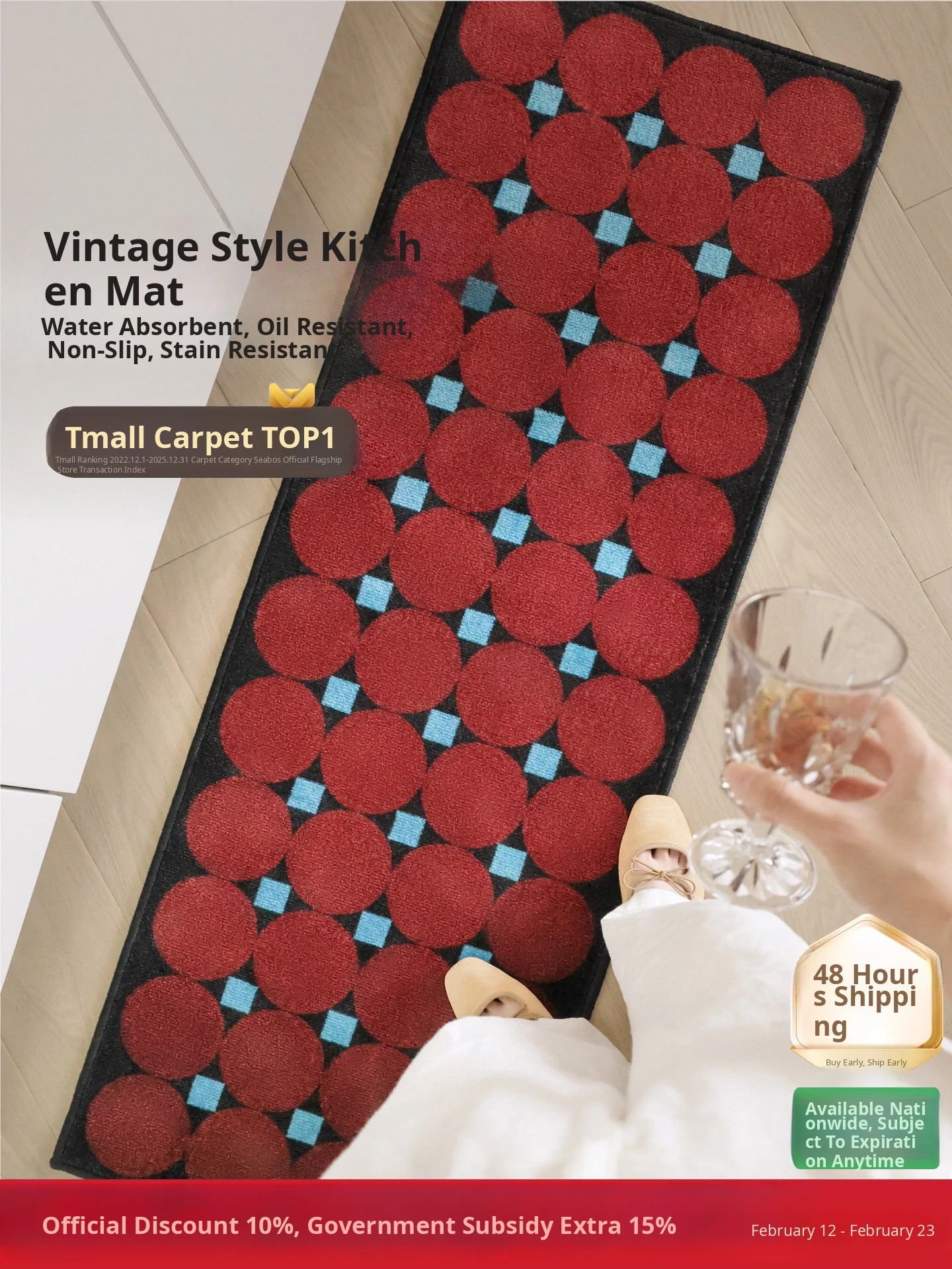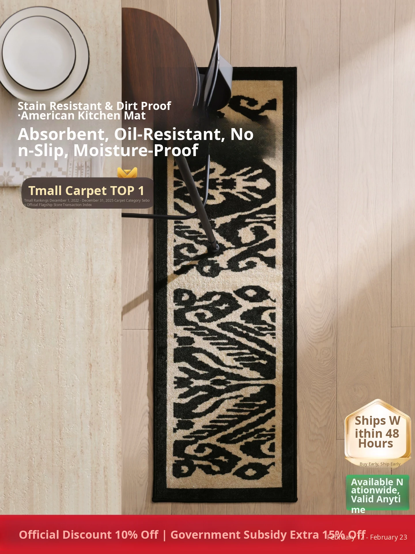 Seabos Waterproof Anti-Stain Non-Slip Kitchen Mat - Easy to Clean, Oil-Absorbent, and Moisture-Proof Woven Rug for a Tidy Kitchen Experience