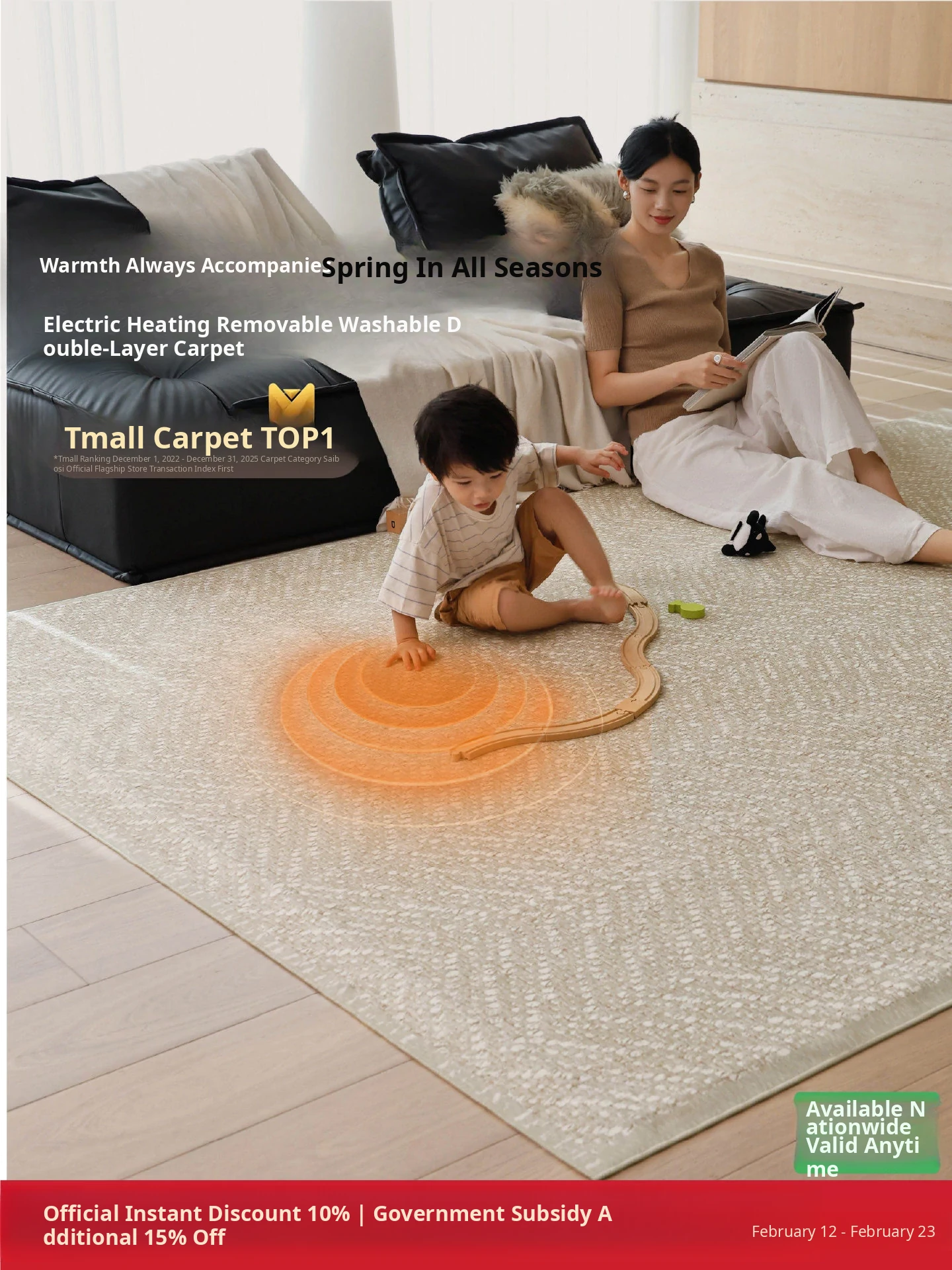 Syboss Cloud Pearl Luxury Electric Heating Carpet - Removable & Washable Double-Layer Graphene Heating Mat for Living Room - Machine Washable Electric Blanket