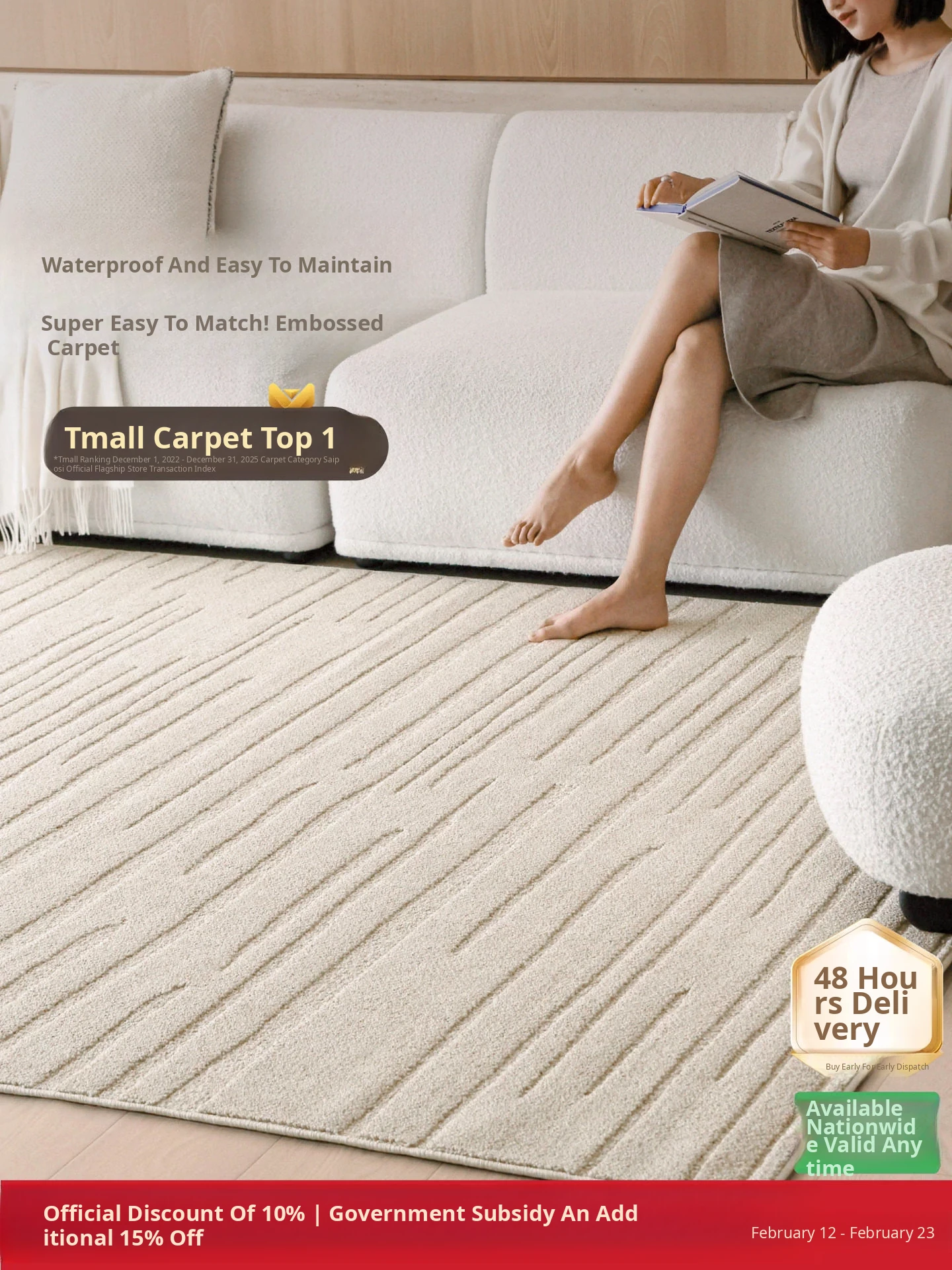 Sypo Waterproof Stain-Resistant Easy-Care Carpet - Elegant Minimalist Design for Living Room and Bedroom, Perfect for Chic Accommodations