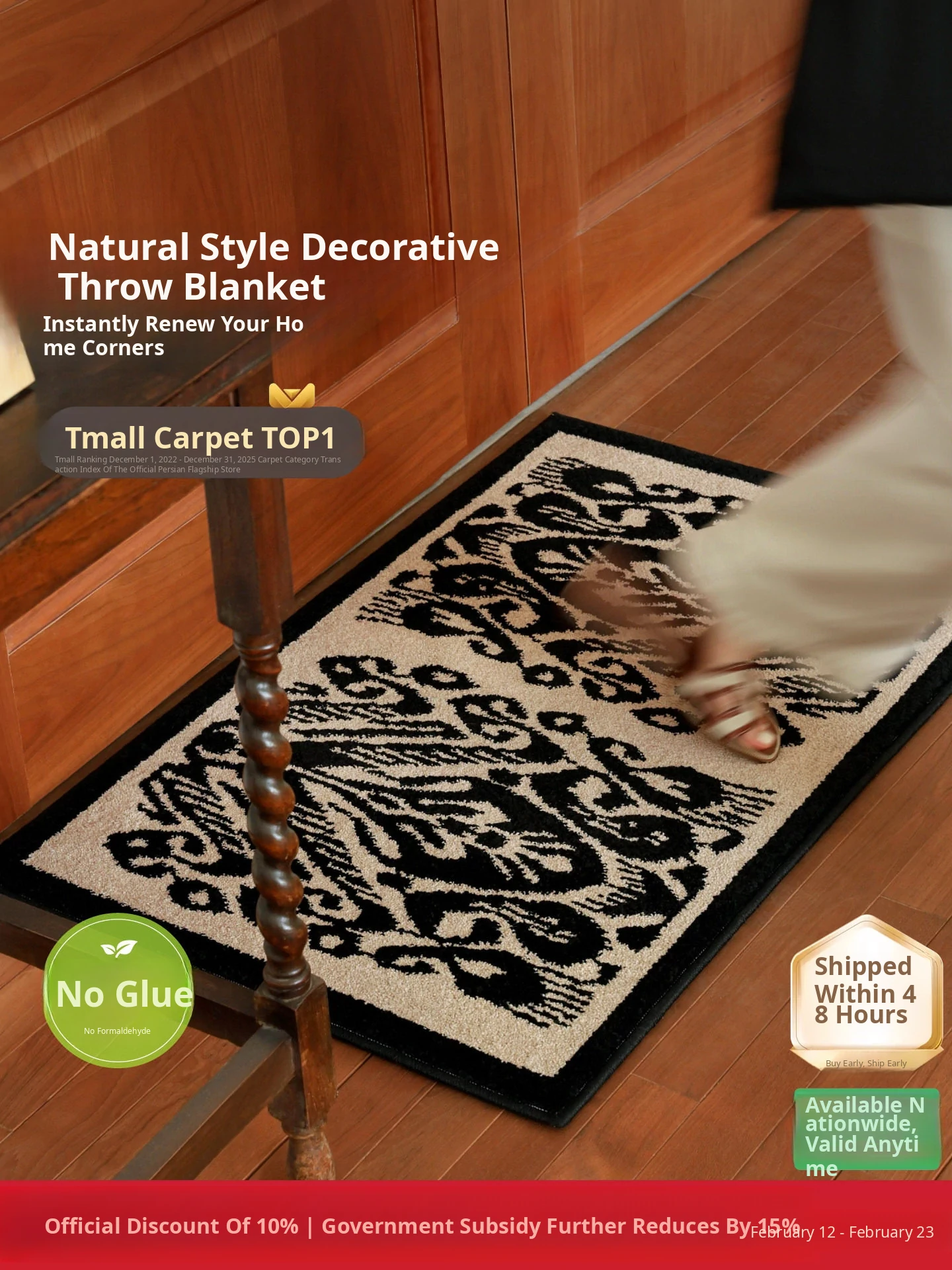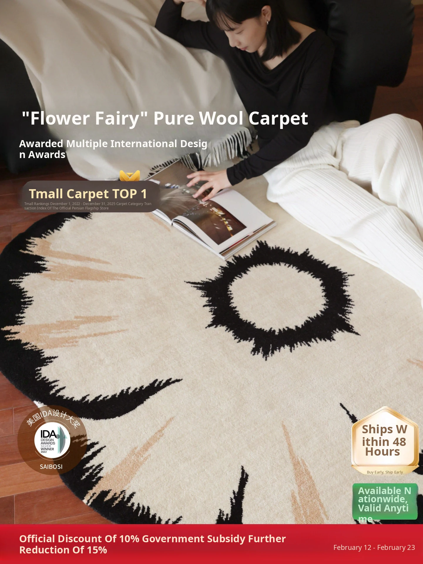 Imported Pure Wool Non-Adhesive Carpet - Floral Fairy Design, Premium French Style for Bedroom, Walk-in Closet, and Living Room - Elevate Your Space with Luxury and Comfort