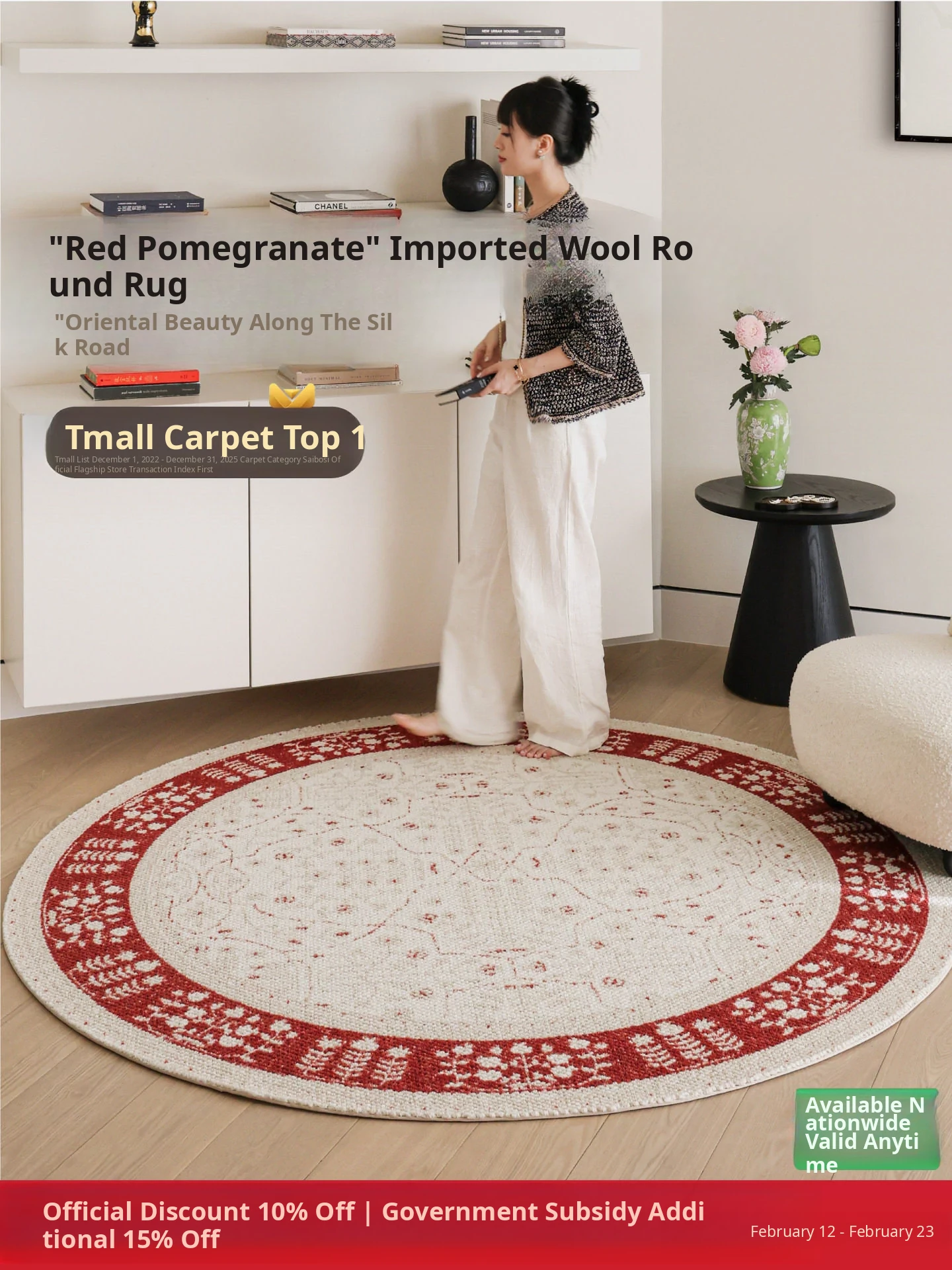 Imported Cyprose Red Pomegranate Round Wool Rug - Elegant New Chinese Style for Living Room, Study, Bedroom, and Walk-in Closet - Luxurious and Stylish Home Decor