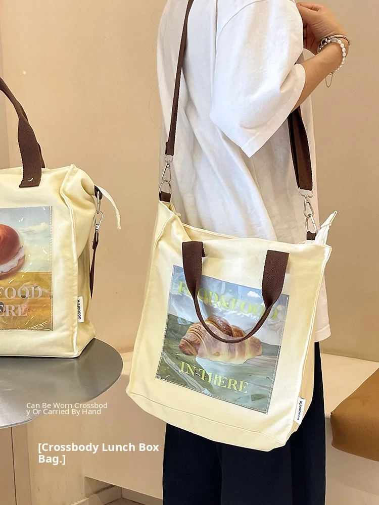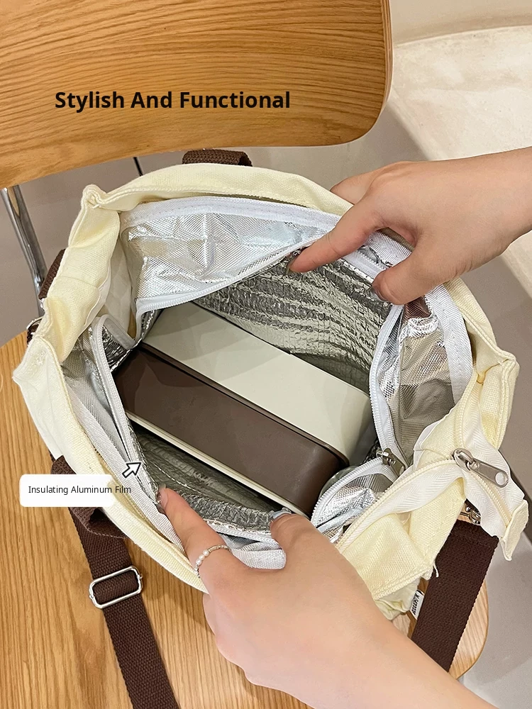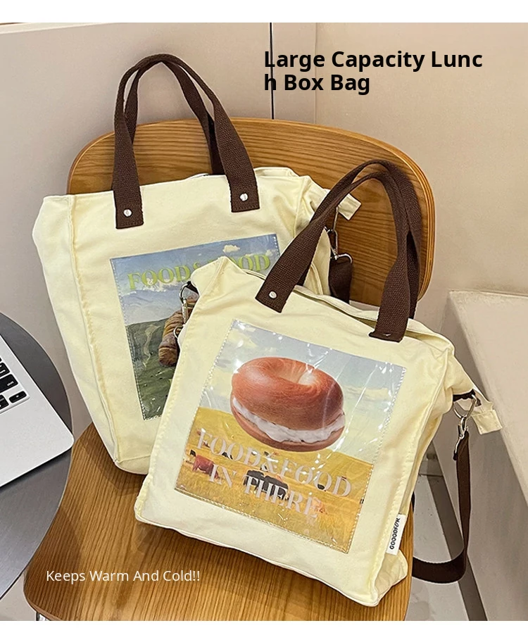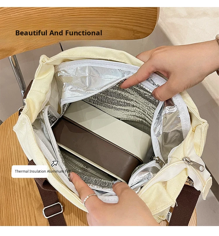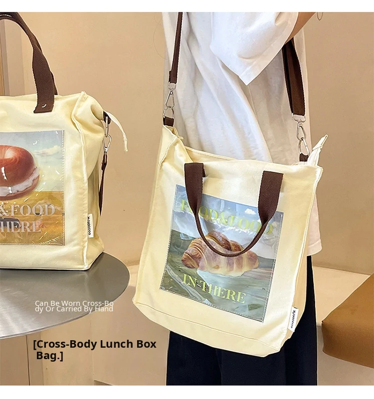 2024 New Canvas Lunch Bag for Women - Stylish Tote and Crossbody Design, Large Capacity Insulated Bento Bag Perfect for Work and Travel