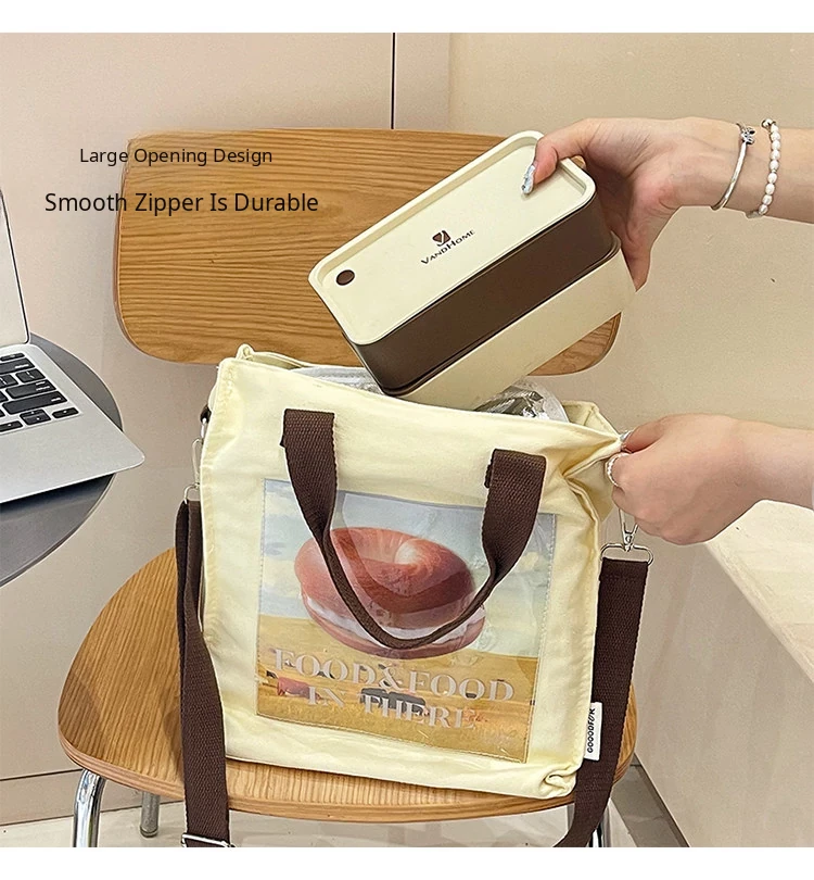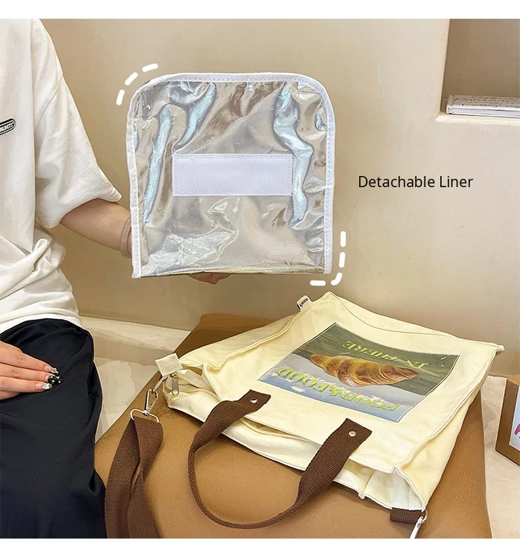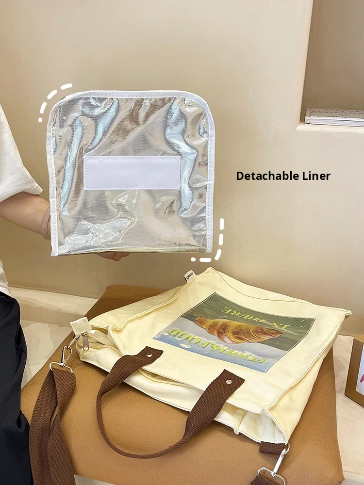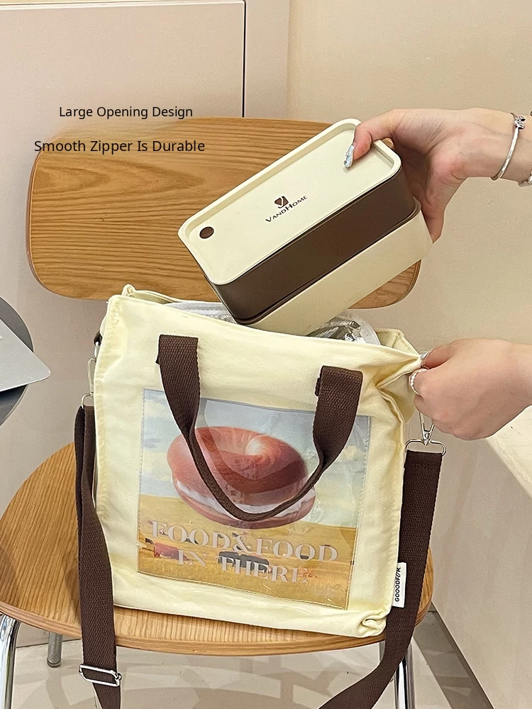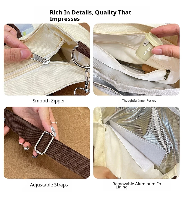 2024 New Canvas Lunch Bag for Women - Stylish Tote and Crossbody Design, Large Capacity Insulated Bento Bag Perfect for Work and Travel