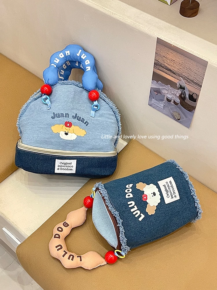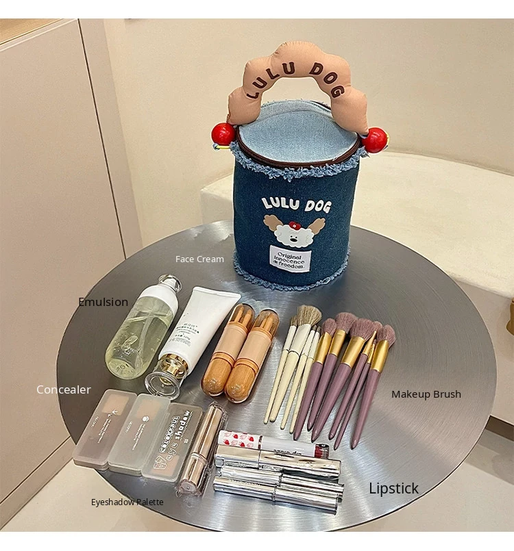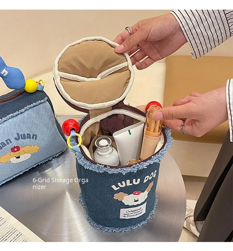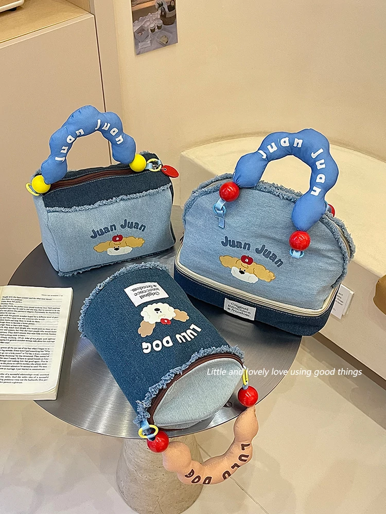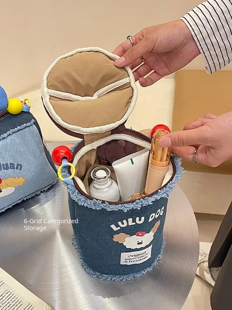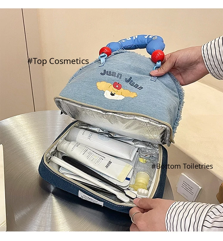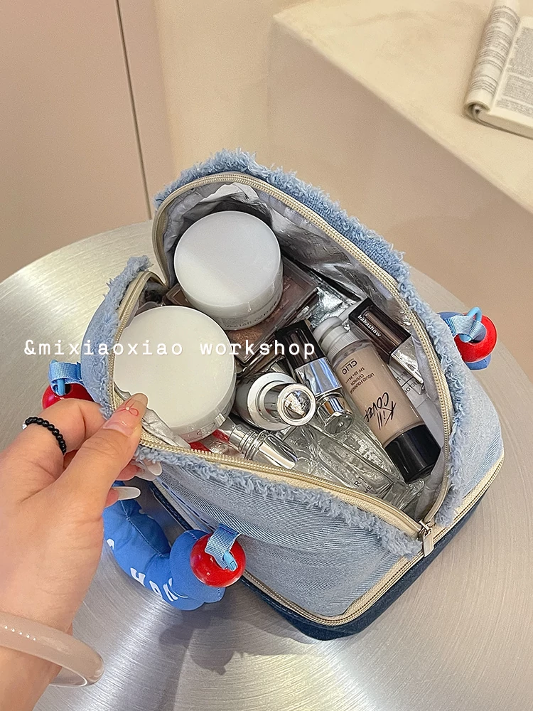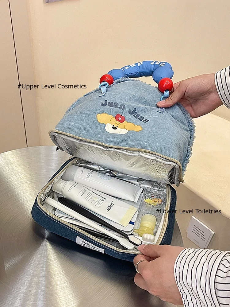 2025 New High-End Denim Makeup Bag for Women - Portable, Large Capacity Travel Toiletry Organizer with Wet and Dry Separation