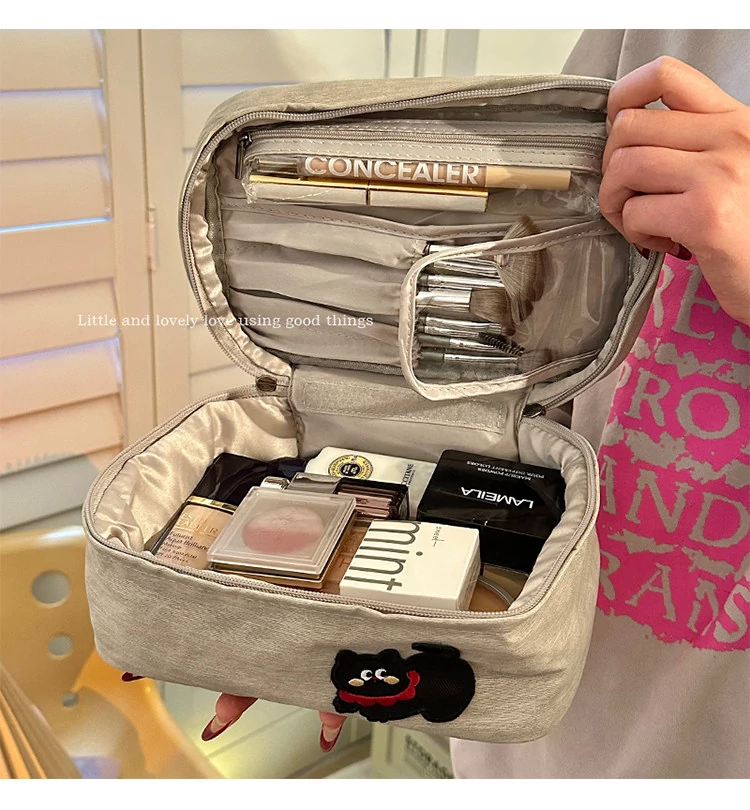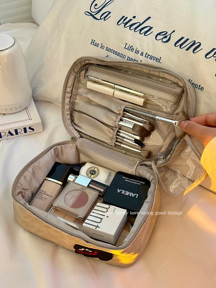 2025 New Large Capacity Makeup Bag - Portable Travel and Business Toiletry Organizer with Dual Compartments for Skincare and Cosmetics