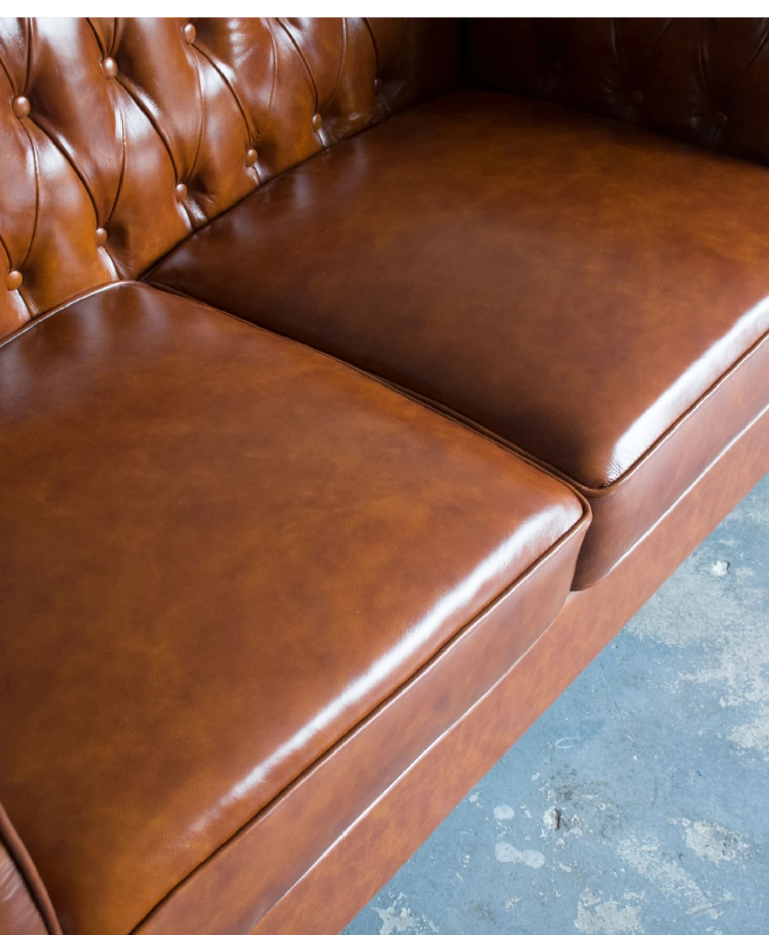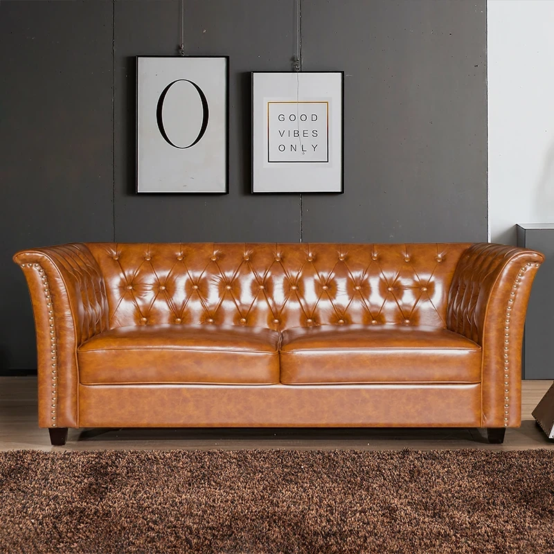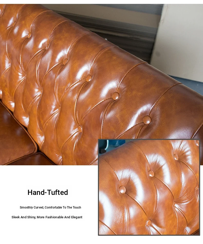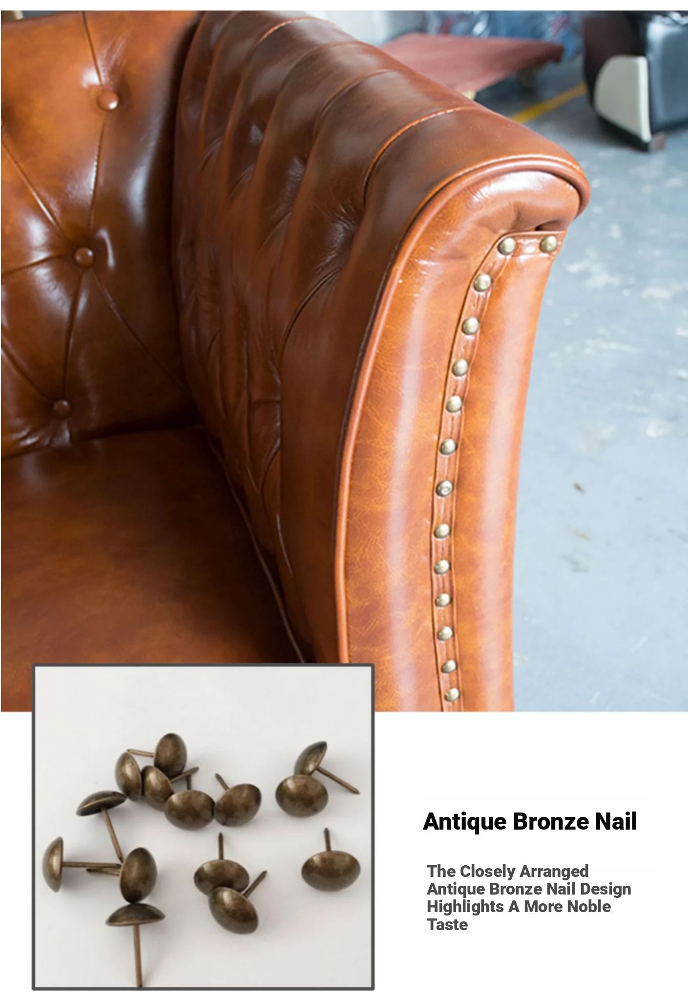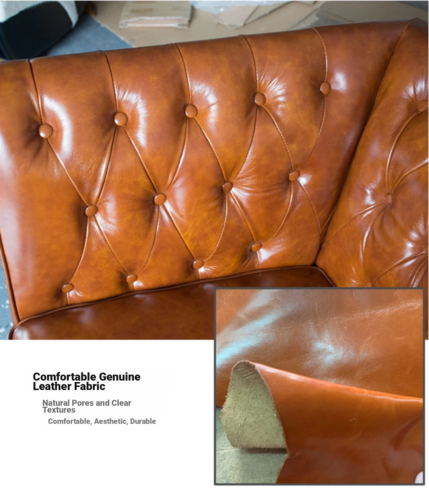 American Rustic Genuine Leather Sofa - Top Grain Cowhide 3-Seater, Oil Wax Vintage Style for Living Room & Office, Retro Distressed Leather Couch